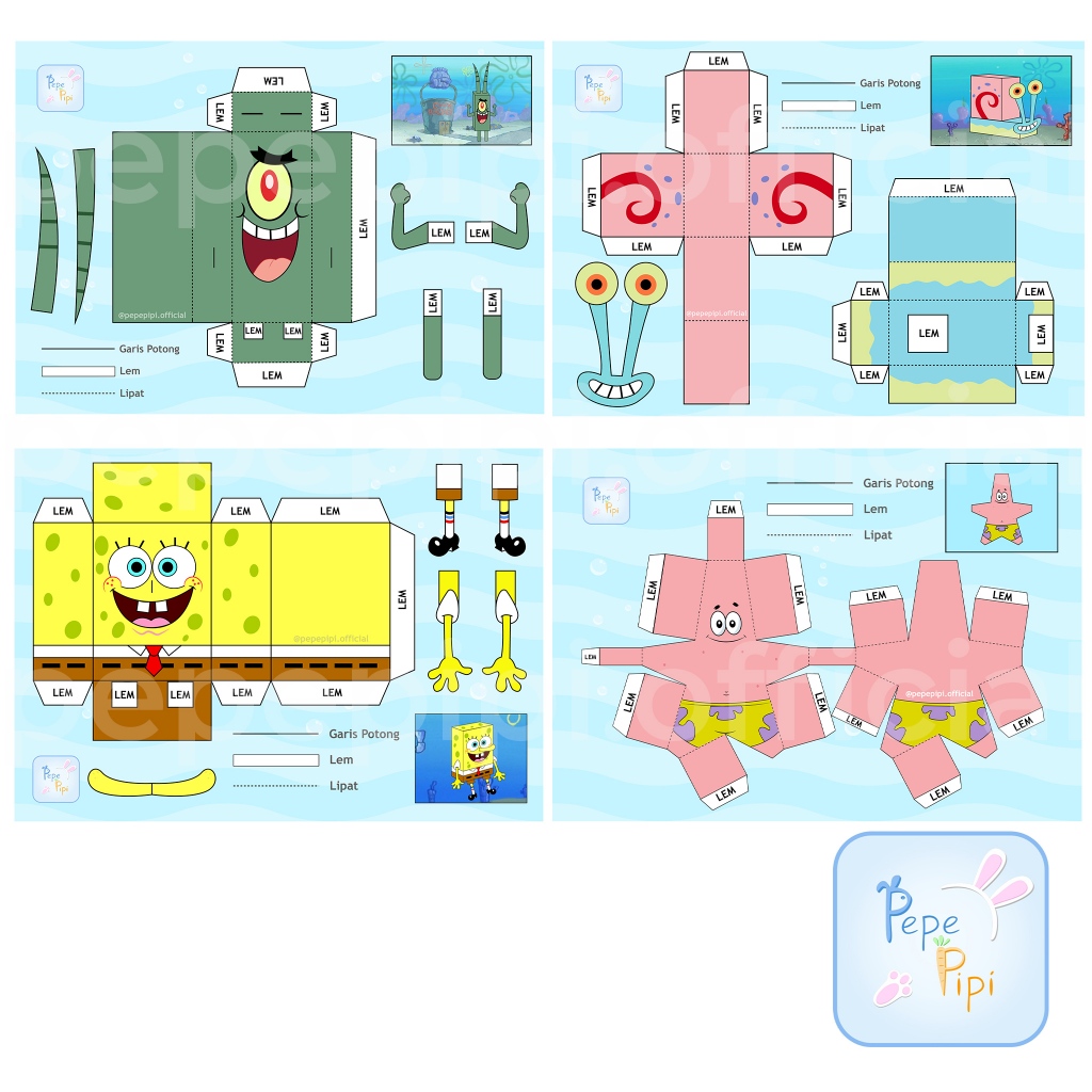 Papercraft 3D Karakter Spongebob Paper Craft Kerajinan Kertas Cut & Play Kerajinan Tangan Aktivitas Anak