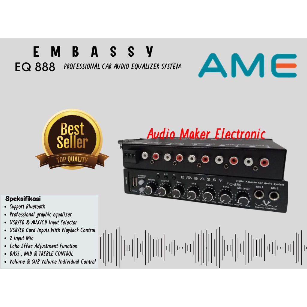 Parametric Equalizer Preamp Embassy EQ-888 Bluetooth EQ USB BT KARAOKE