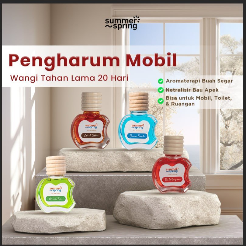 Parfum Mobil / Pengharum Mobil / Pewangi Mobil - Summer Spring - Botol Apel - Tahan Lama Anti Mual