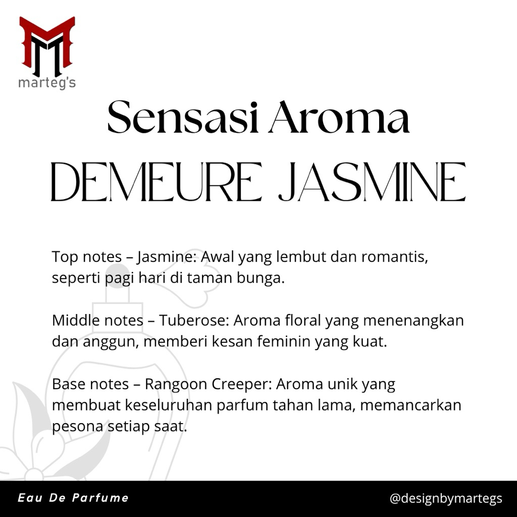 Parfume Demeure Jasmine Eau De Parfume 30 Ml by Marteg's