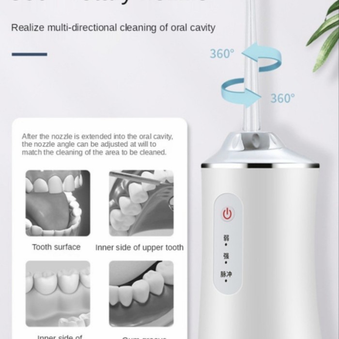 360° Water Dental Floss USB Flushing Gigi Portable Oral Irrigator Pembersih Gigi Lidah Semprotan Kotoran x
