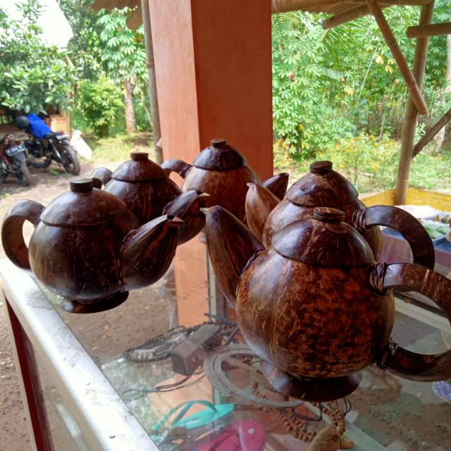 Teko batok kelapa unik jadul natural alami teko/ceret tempurung kelapa