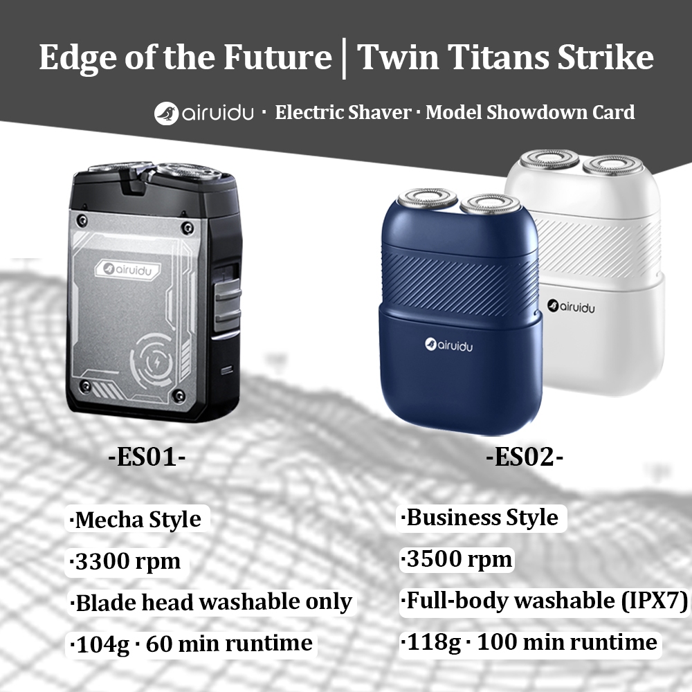 Airudiu ES01 Pencukur Jenggot Elektrik Mini Portable Alat Cukur Kumis Pria IPX7 Anti Air Travel USB Charging