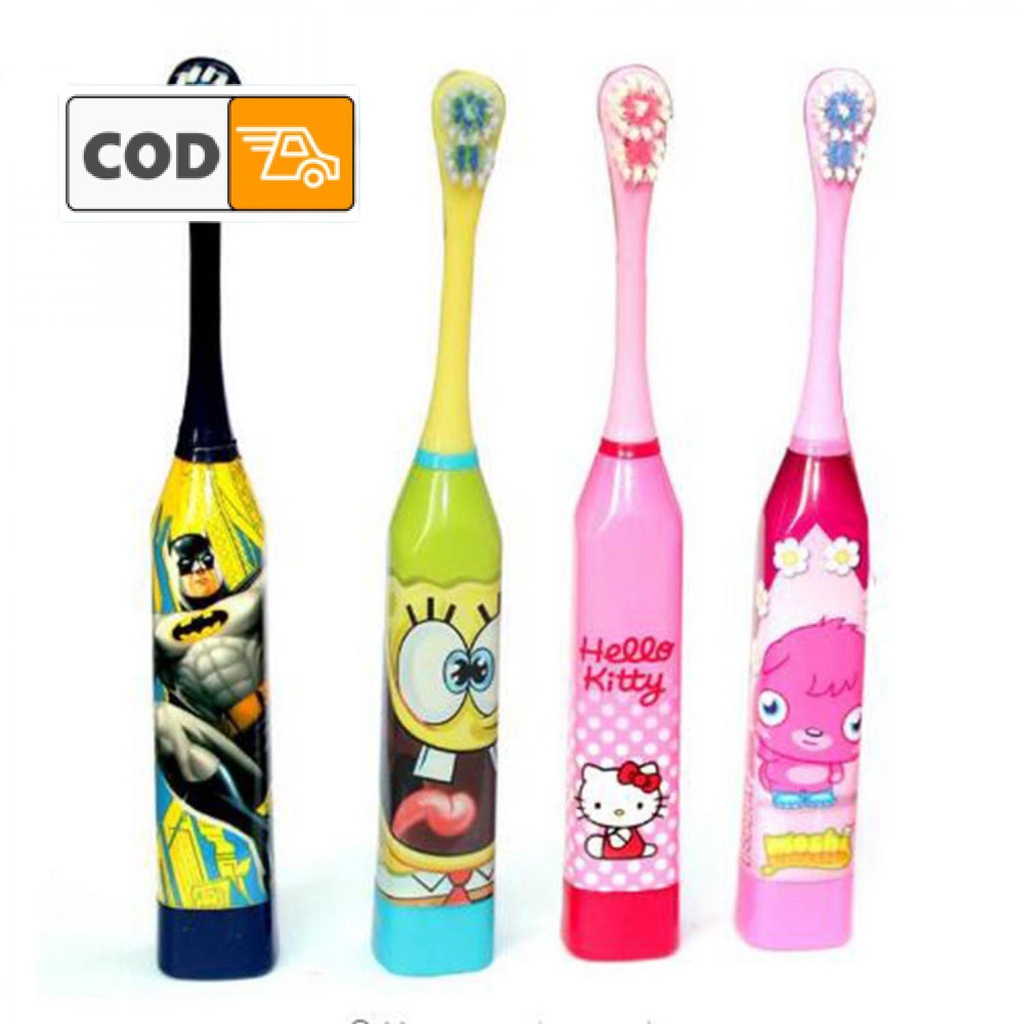 Sikat Gigi Elektrik Anak-Anak Karakter Kartun Lucu Replaceable Head Otomatis Baterai AA Gigi Lebih Bersih