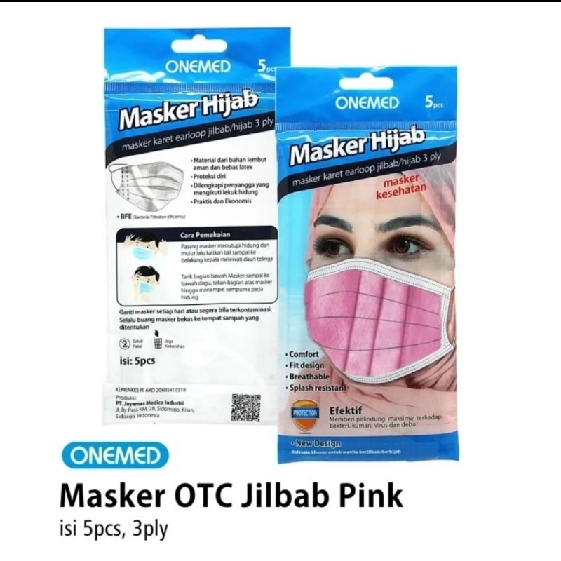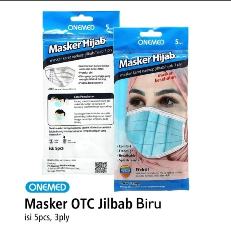 Masker jilbab hijab 5 pcs sachet otc onemed berbagai warna
