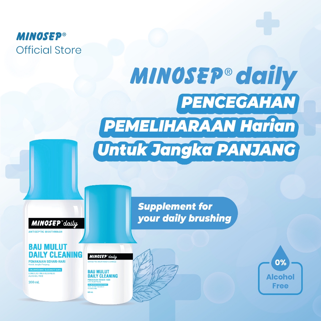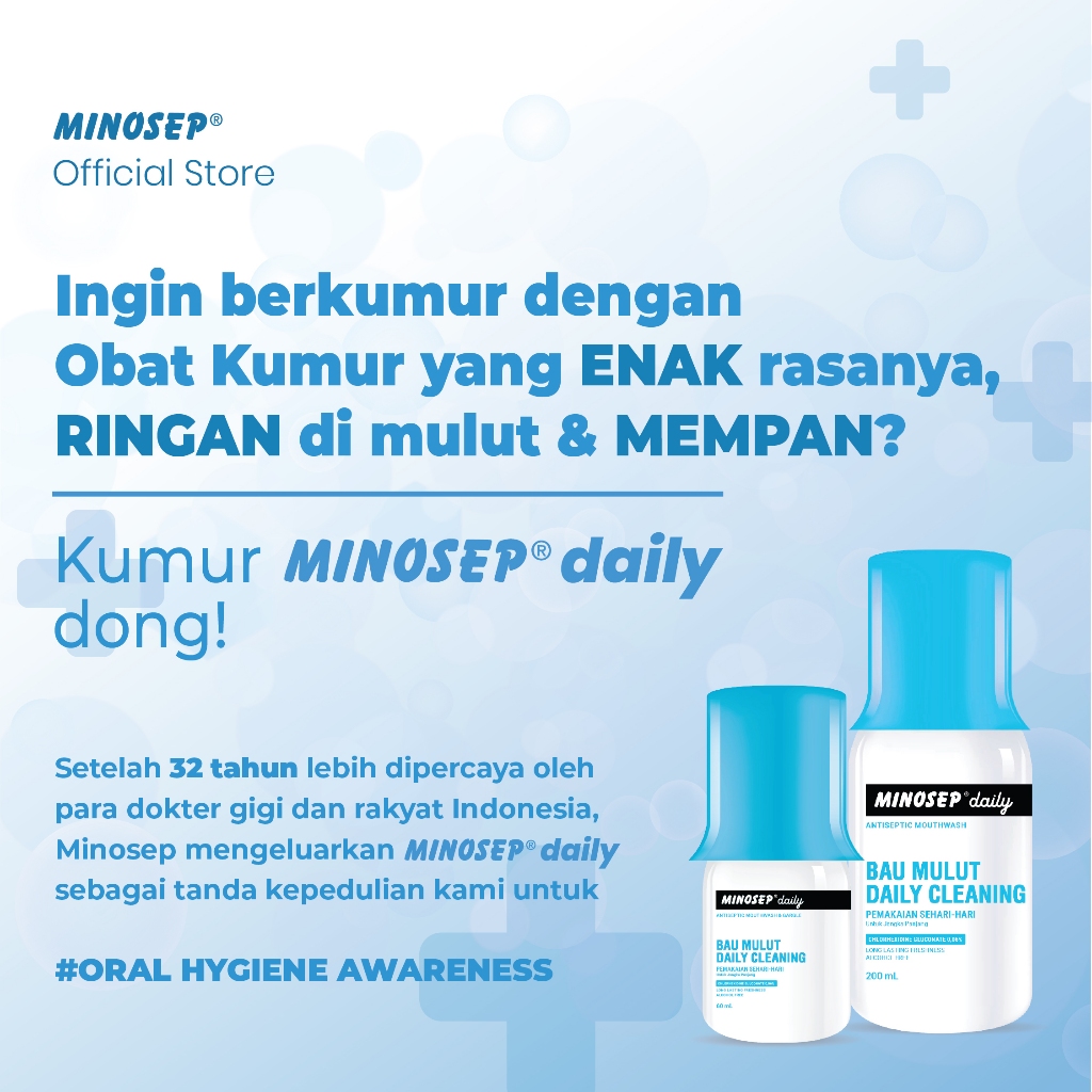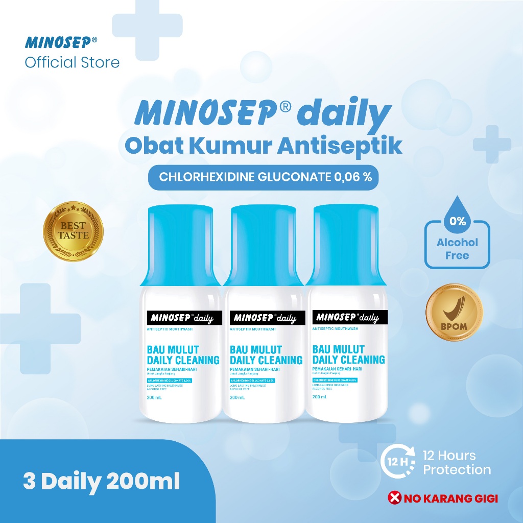 Minosep DAILY Obat Kumur Antiseptik 200ml 3 botol Bau Mulut Plak Sariawan Membersihkan Harian