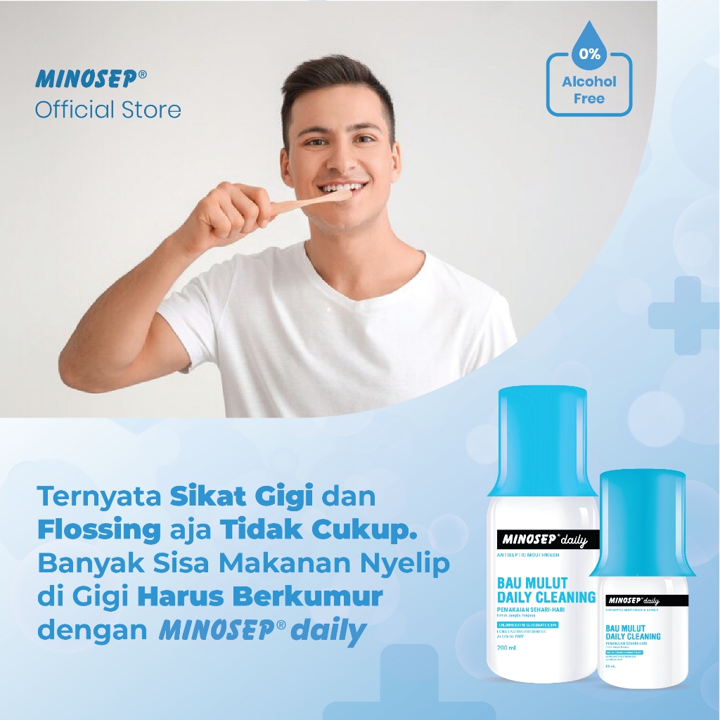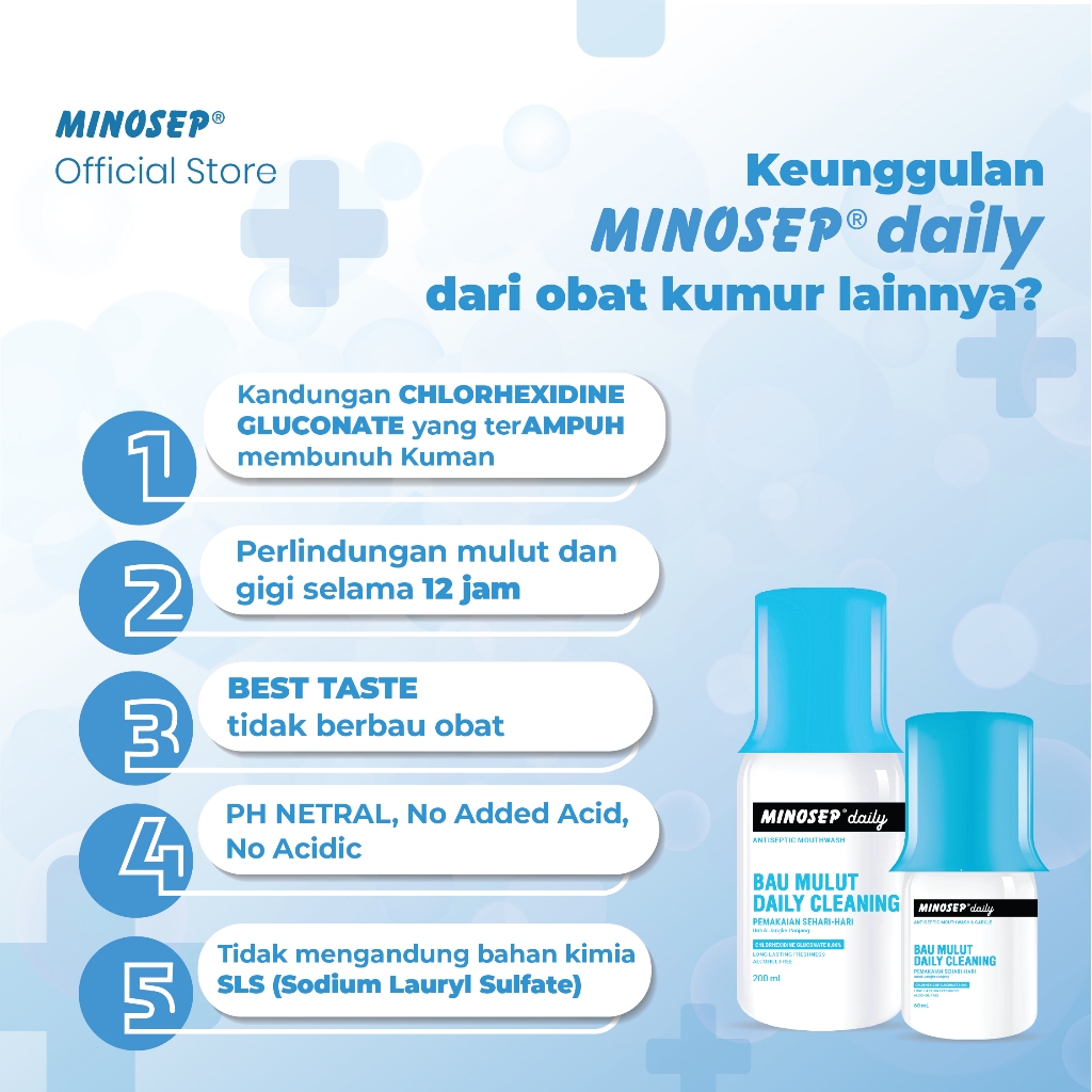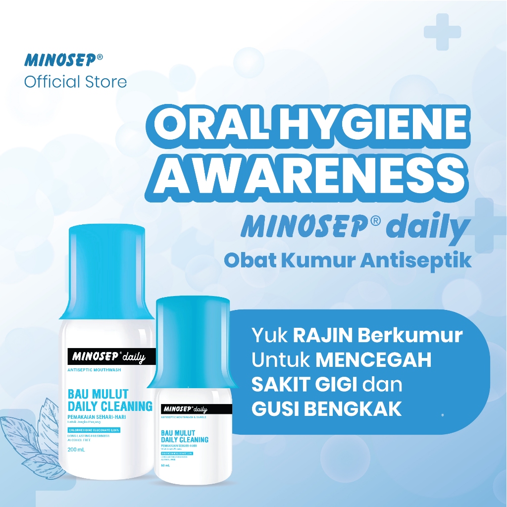 Minosep DAILY Obat Kumur Antiseptik 200ml 3 botol Bau Mulut Plak Sariawan Membersihkan Harian
