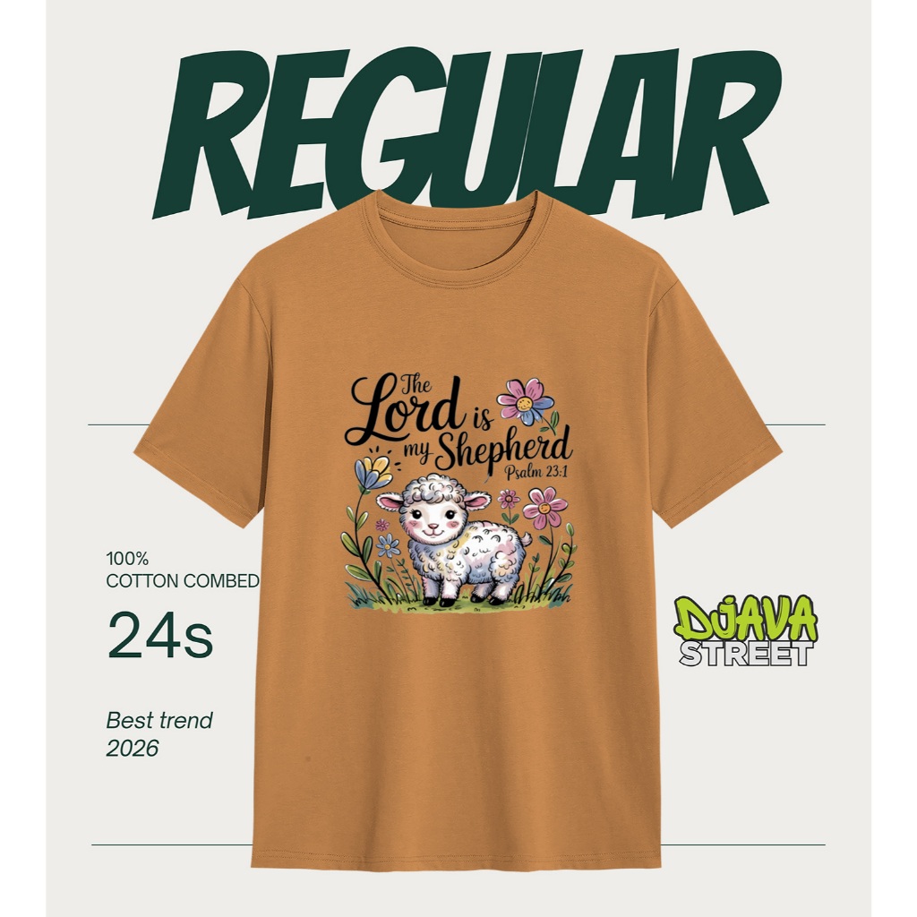 Part 1 Kaos Rohani Domba Imut The Lord is My Shepherd T-shirt Lengan Pendek Wanita Kristen Katolik Bahan Katun- DJAVASTREET