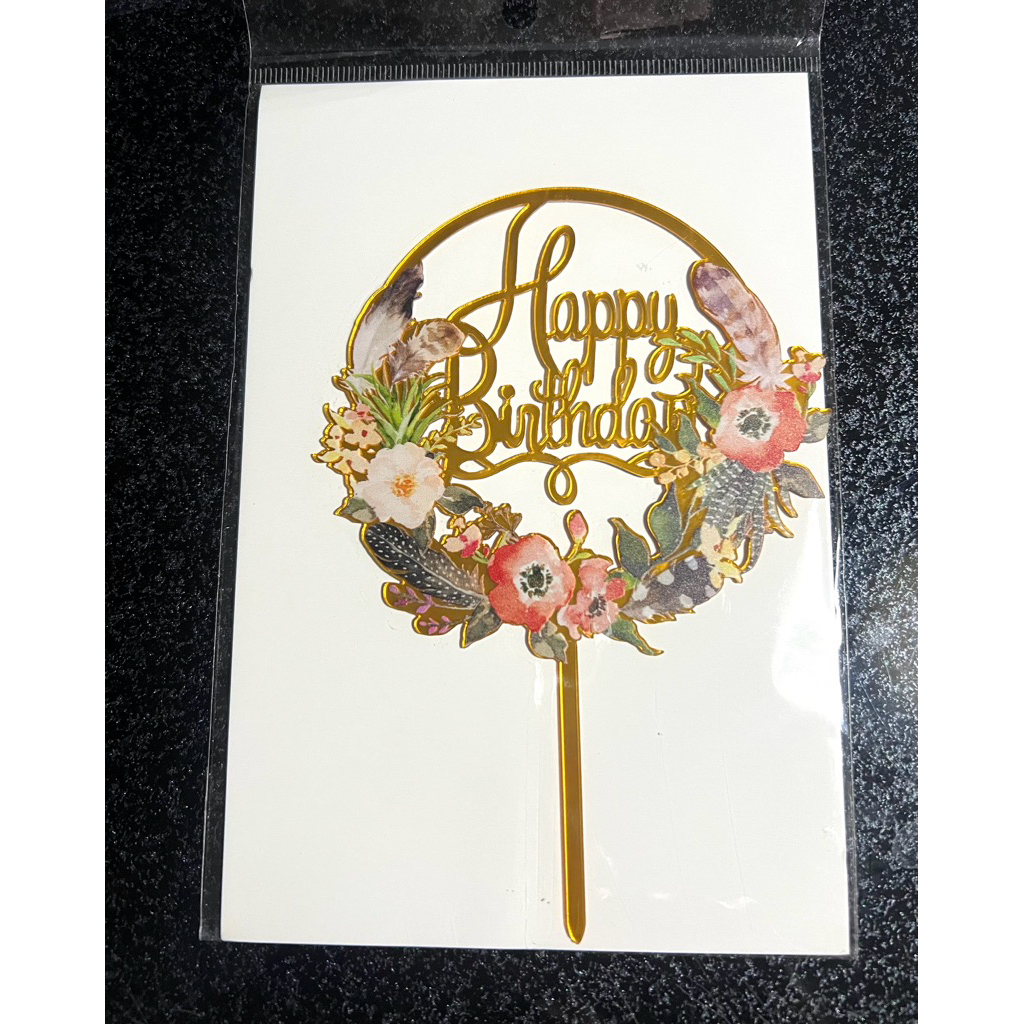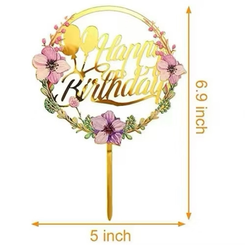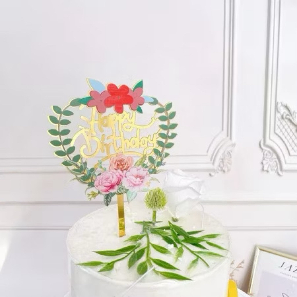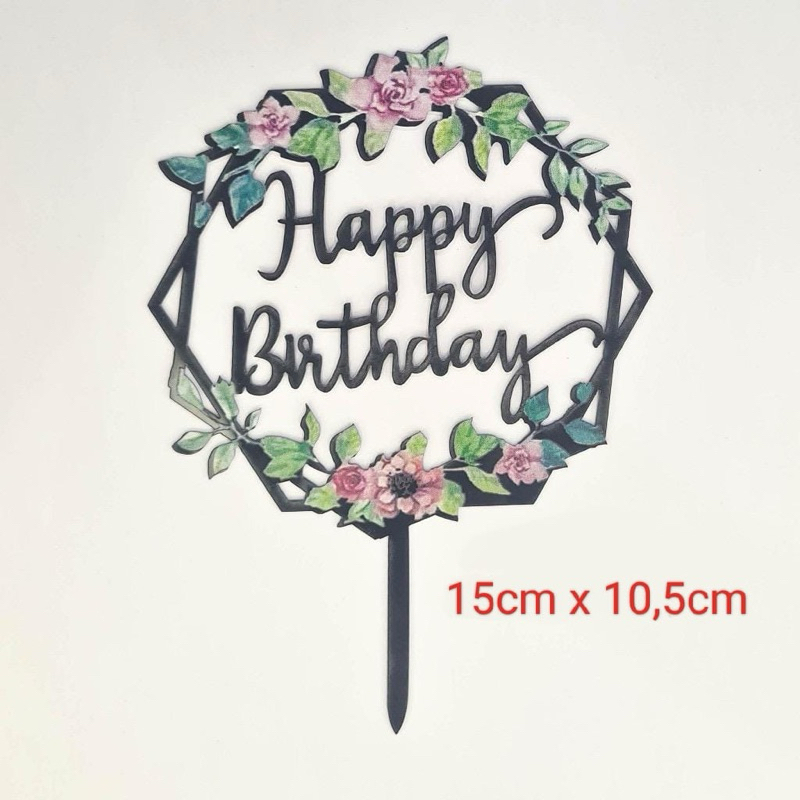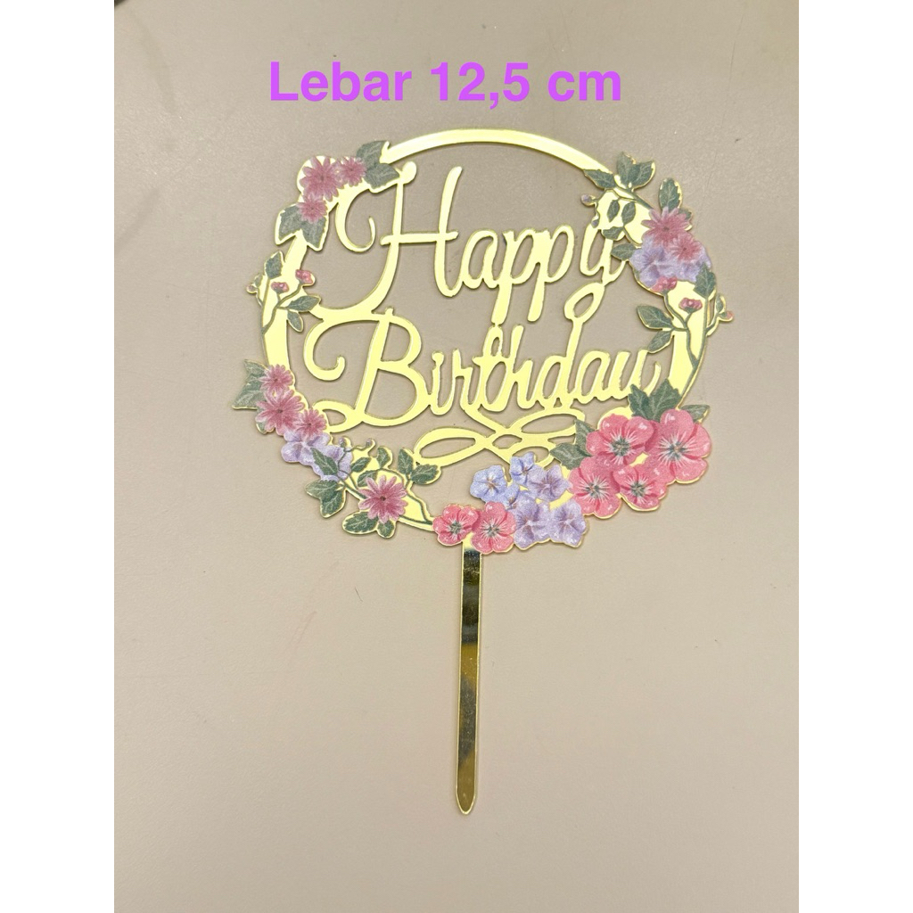 Part 3: Cake topper Happy birthday flowers / topper kue hbd bunga-bunga / topper akrilik happy birthday bunga