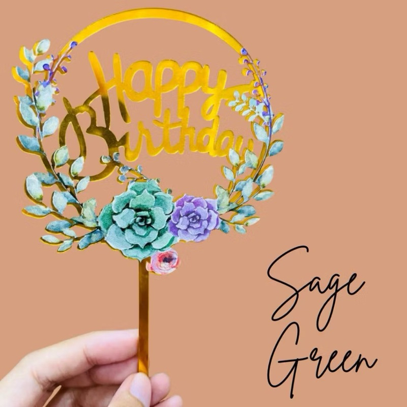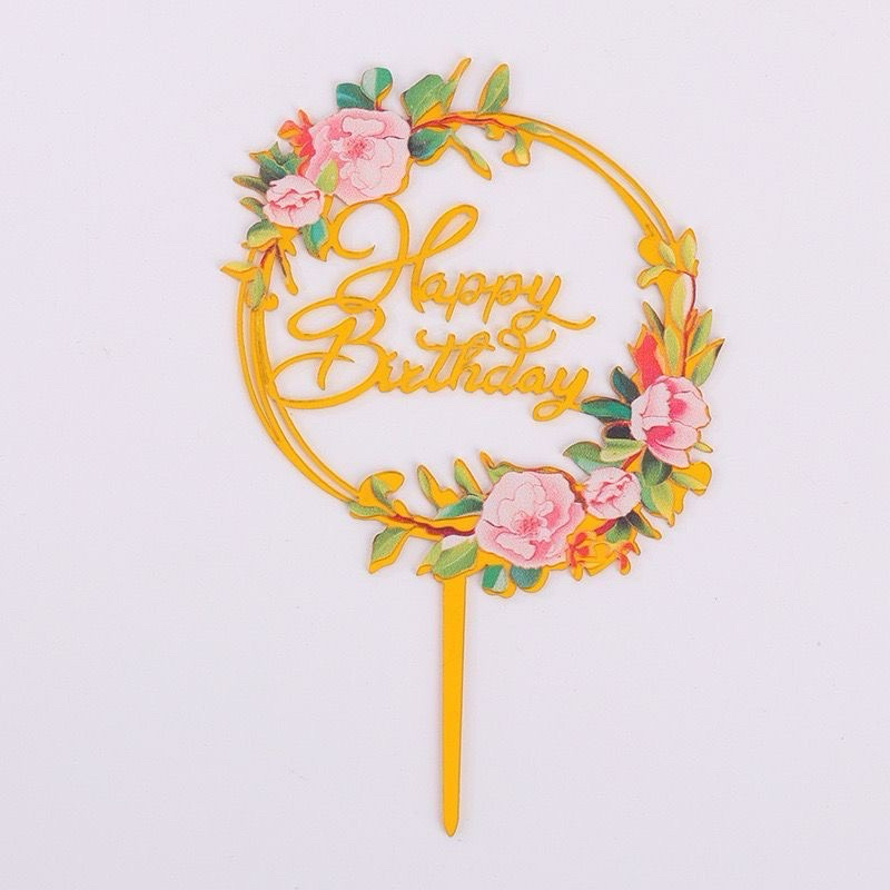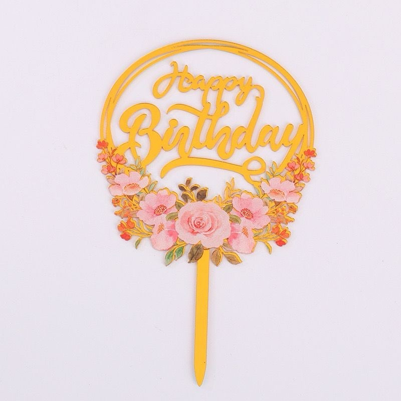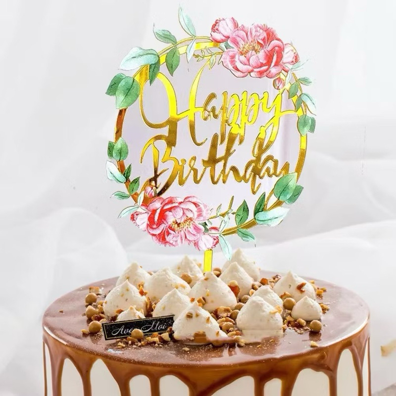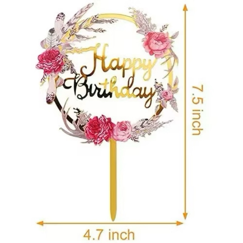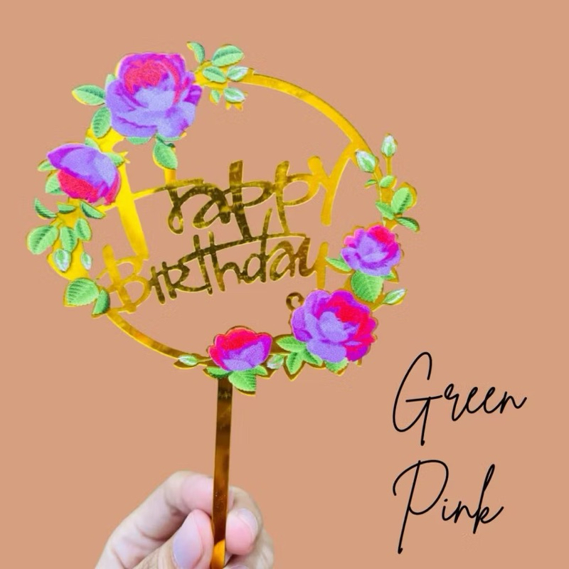 Part 3: Cake topper Happy birthday flowers / topper kue hbd bunga-bunga / topper akrilik happy birthday bunga