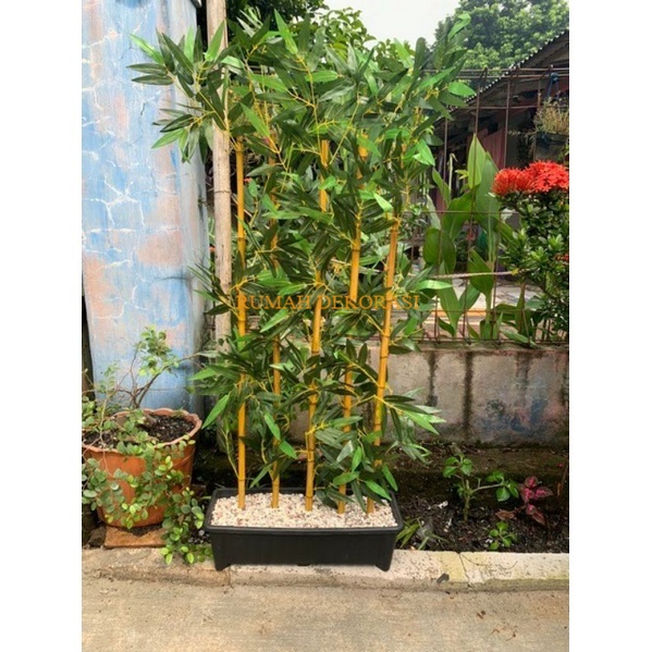 Partisi bambu T 2 M P 50cm Pot Plastik Artificial Bambu Penyekat Pembatas Penghalang Ruangan Hiasan Dekorasi Rumah Tirai Bambu Tanaman Hias