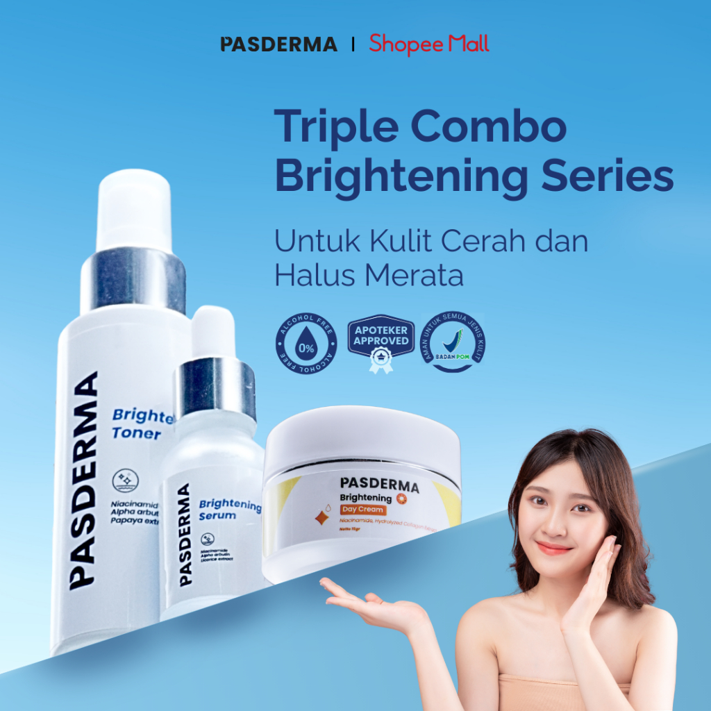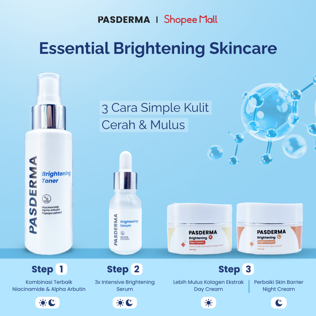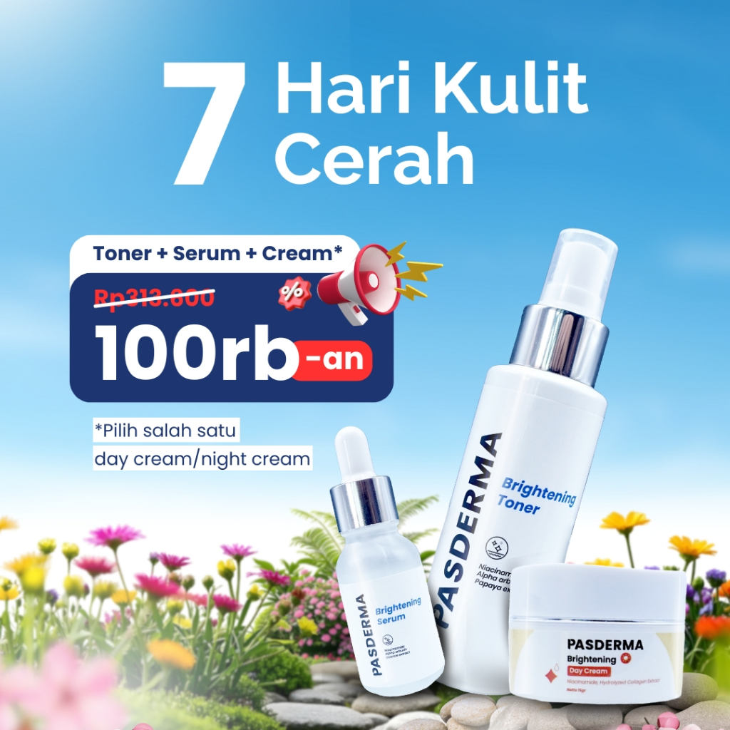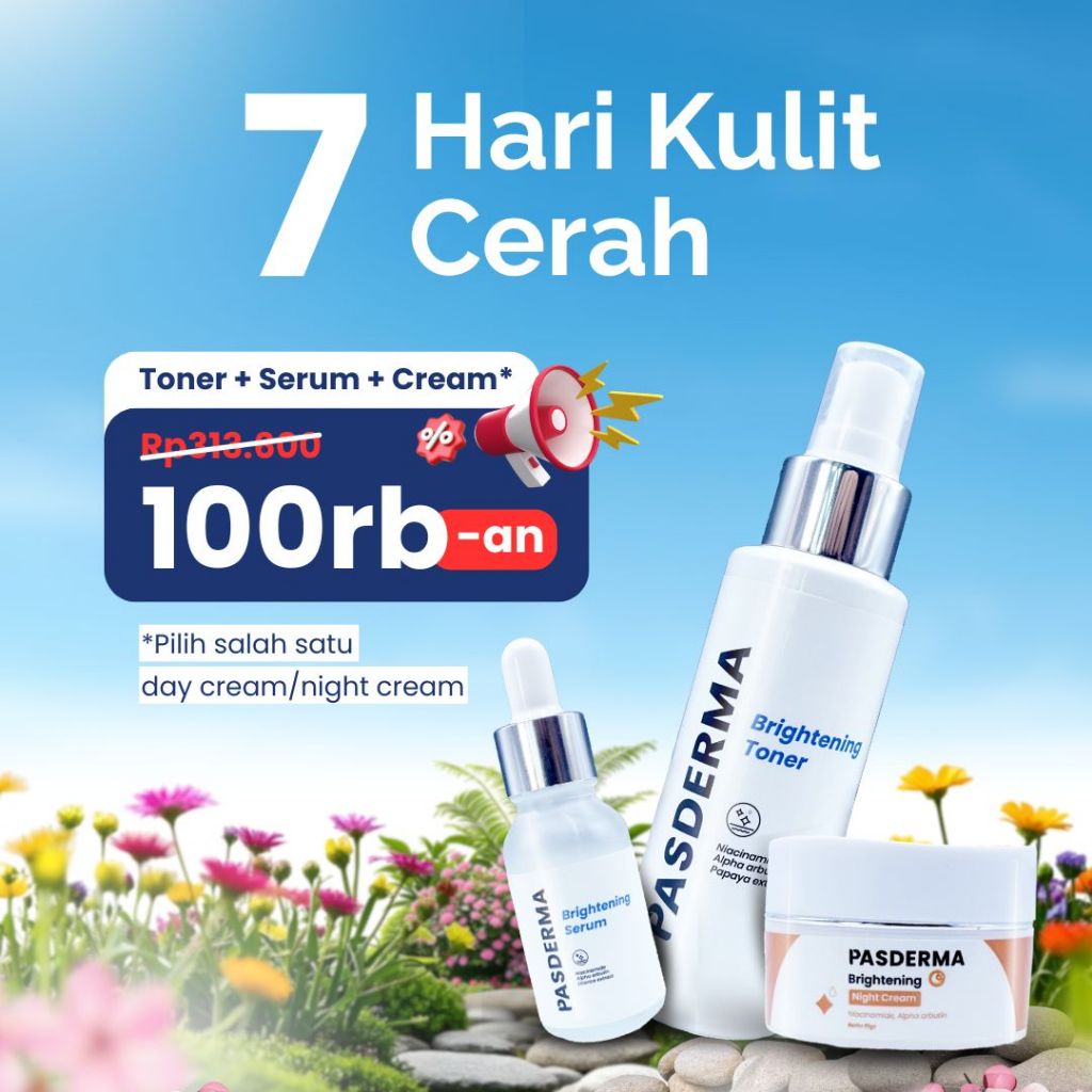 SKINCARE 1 SET LENGKAP | Cerahkan Wajah Kusam & Ratakan Kulit Belang – Toner Serum Cream | Pasderma