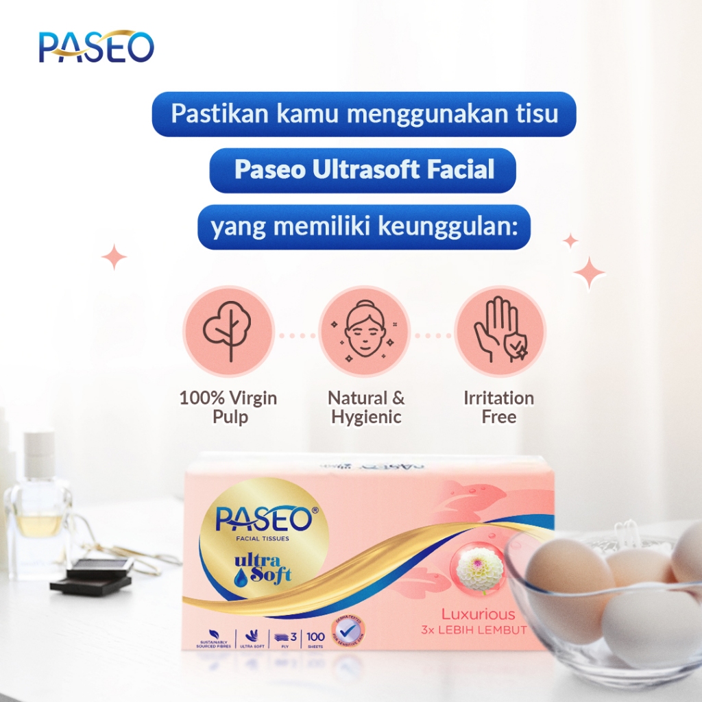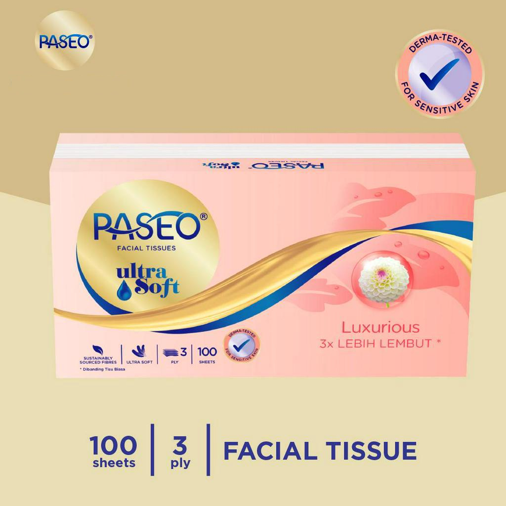 PASEO Ultra Soft Luxurious Facial Tissue 100's 3 Ply - Tisu Wajah Premium