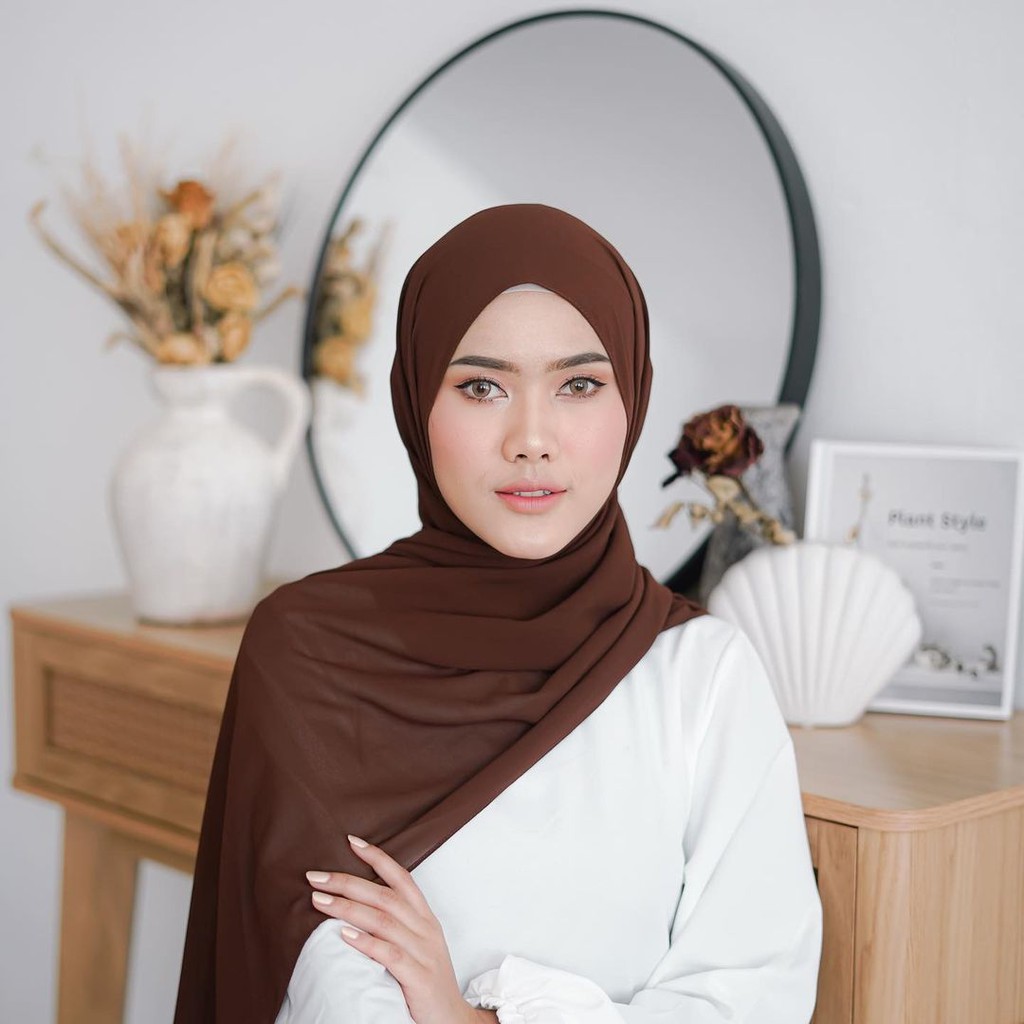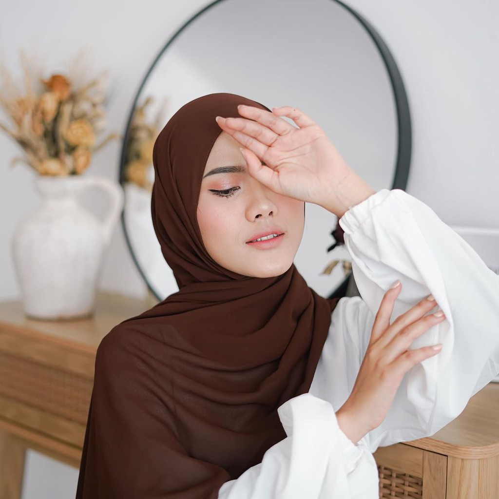 Pashmina Ceruty Babydoll Warna Coklat Coffee 180cm x 75cm