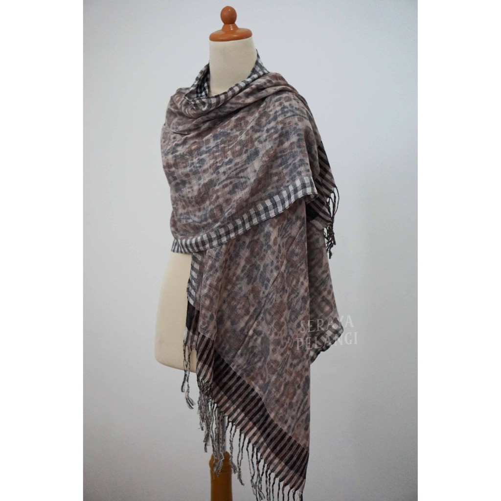 Pashmina Dua Sisi Motif Loreng Kotak Selendang Scarf Syal Shawl Pasmina Halus Souvenir Hadiah Ulang Tahun Birthday Gift Aksesoris Fashion Wanita Premium Import High Quality Grosir Murah Viscose Cotton Cashmere Kashmir Seraya Pelangi Turki Arab Thailand