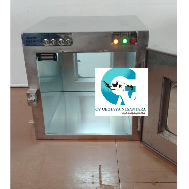 Pass Box Stainless Steel Dimensi : 500x500x500mm Listrik+Lampu UVC+Lampu TL+Interlock Door Sistem