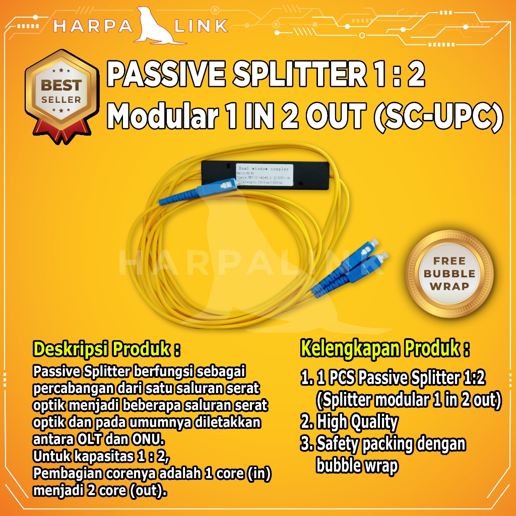 Passive Splitter 1:2 SC UPC Pasif Spliter PLC 1:2 SC/UPC Modular Fiber Optic Coupler Cable Optik FO FTTH 1 2 SC-UPC High Quality Premium
