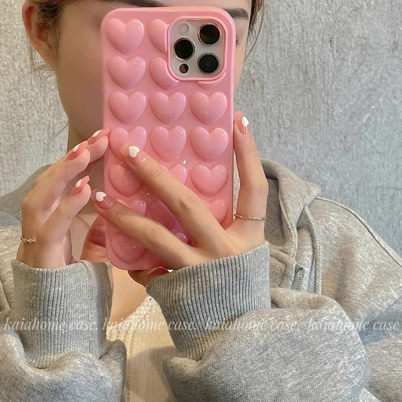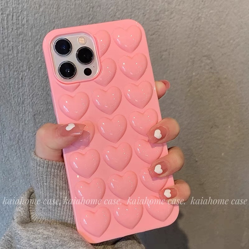 Pastel Pink Heart Case HP Softcase Lucu for iphone XS Max XR 11 Pro Max 12 Pro Max 13 Pro Max
