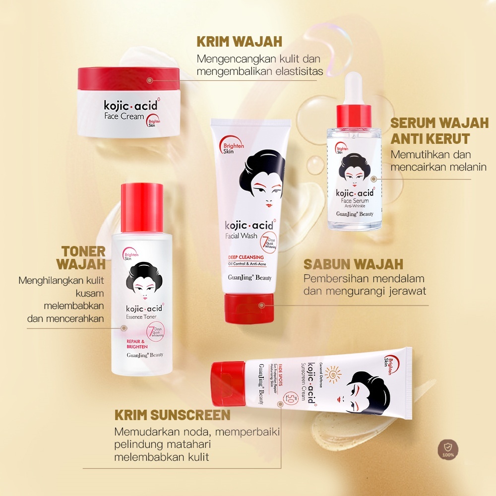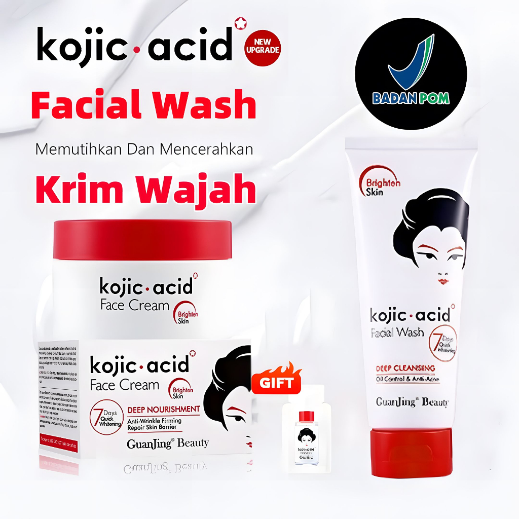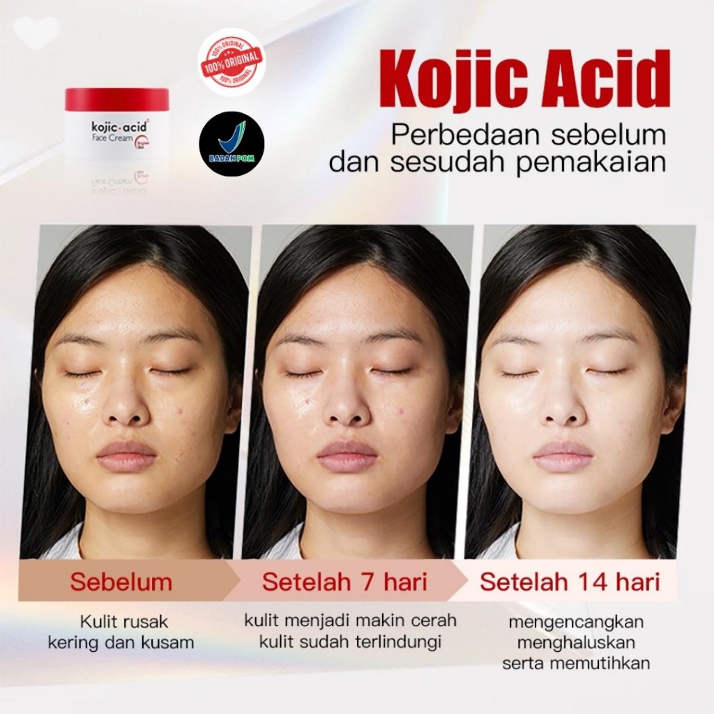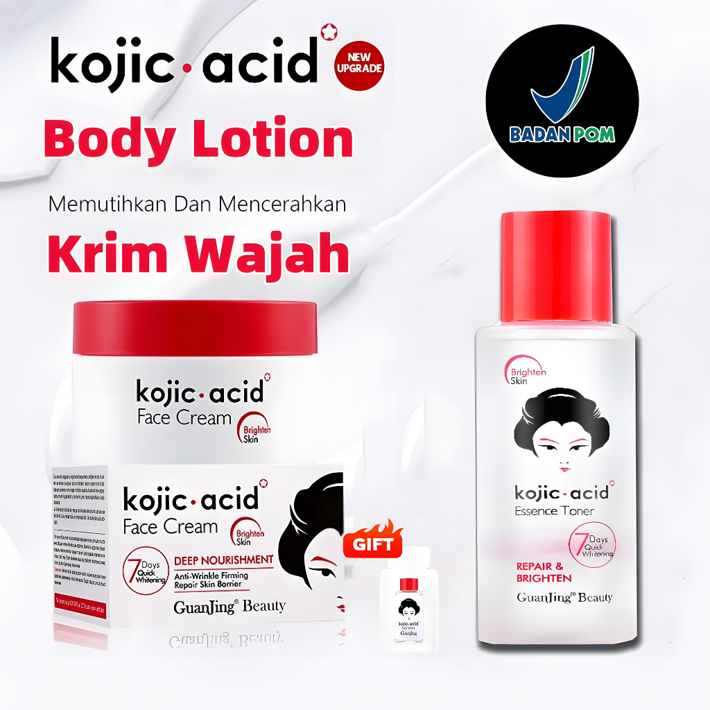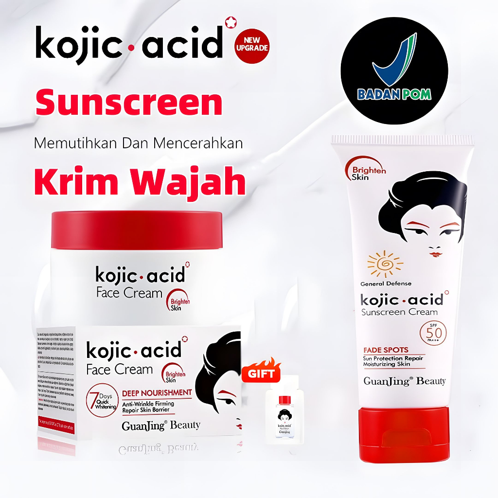 GUANJING Kojic Acid Original Facial Moisturizer Whitening Cream 50gr - Kojic Acid Membantu Memudarkan Bintik Hitam dan Noda di Wajah Vitamin C Membantu Meningkatkan Produksi Kolagen Memperbaiki Kerusakan pada Kulit Akibat Sinar Matahari