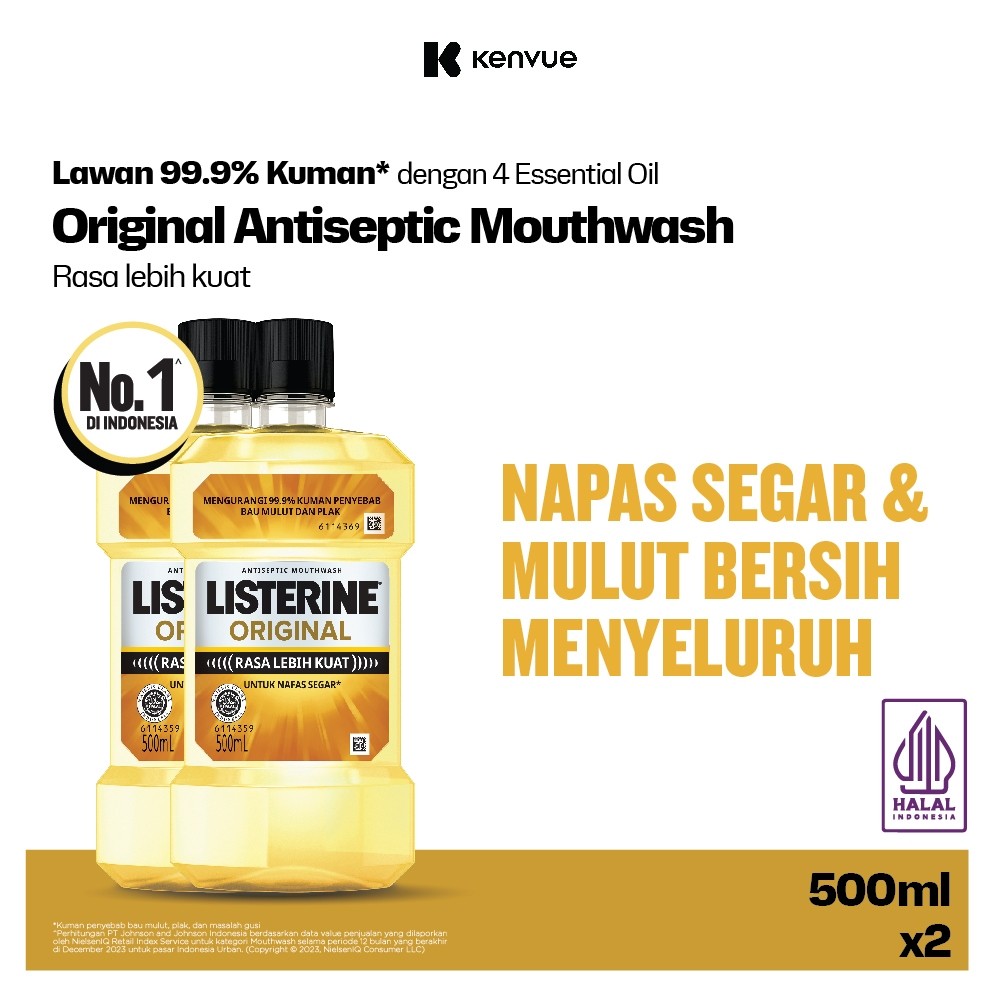 LISTERINE Original Antiseptic Mouthwash / Obat Kumur Antiseptik 500ml - Isi 2