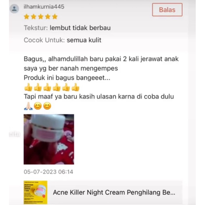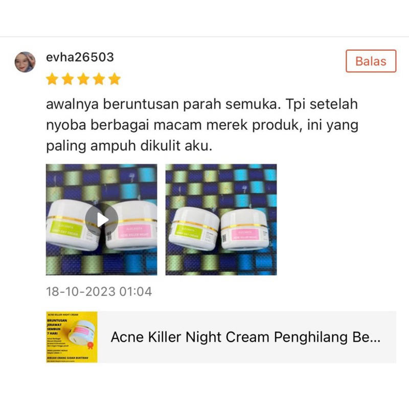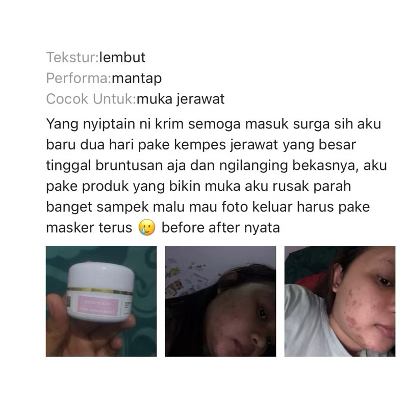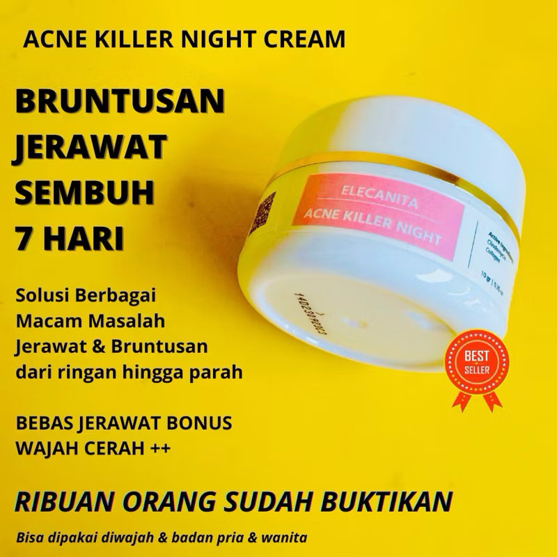 ACNE NIGHT Elecanita Cream Malam Penyembuh Jerawat Parah Bruntusan