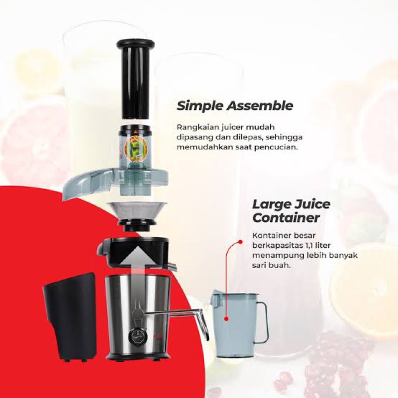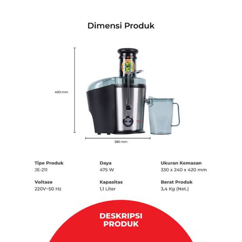 MASPION JE-211 JUICE EXCTRACTOR BLENDER STAINLESS STEEL 1.1 LITER PENGESTRAK BUAH
