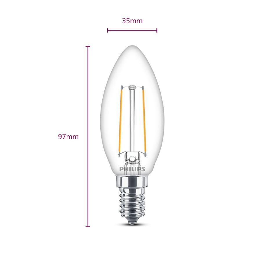 Philips Lampu Filament Bohlam LED 2W B35 E14 Kuning