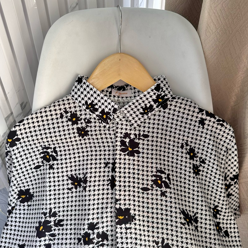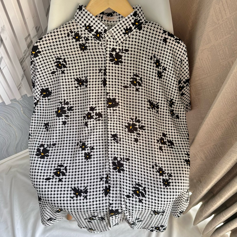 Pattern Shirt / Oversized Pattern Shirt / Flowery Black