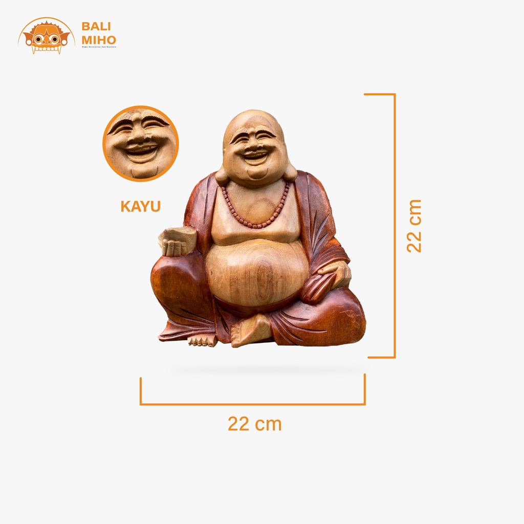 Patung Buddha Maitreya 22 cm - Patung Buddha Kayu - Patung Kayu - Patung Buddha Maitreya Kayu - Patung Buddha - Patung Buda - Patung Buda Maitreya - Patung Buda Kayu - Patung Handmade - Patung Suci