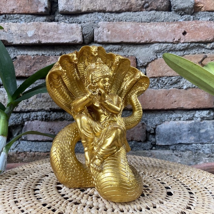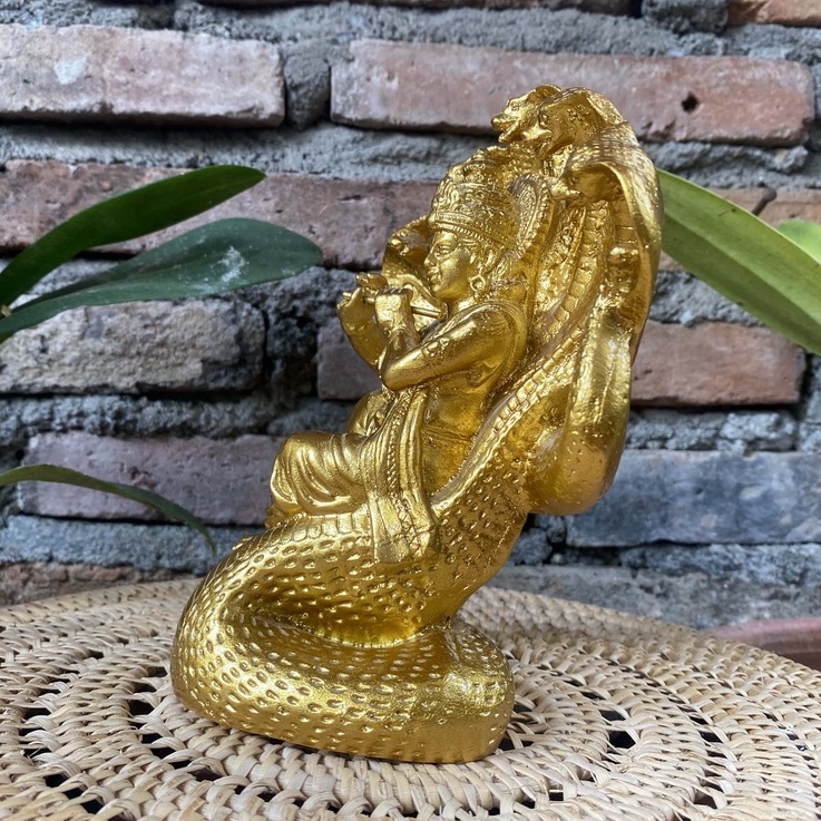 Patung Dewa Krisna memegang suling Gold