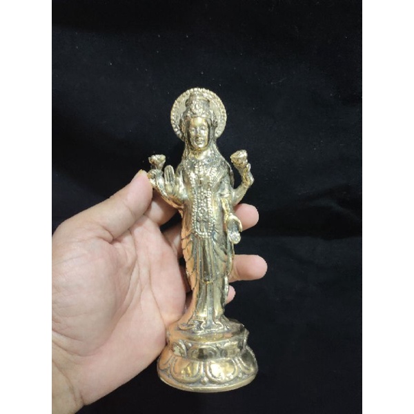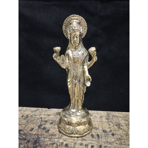 Patung Dewi Laksmi Kuningan Devi Sri Lakshmi Brass