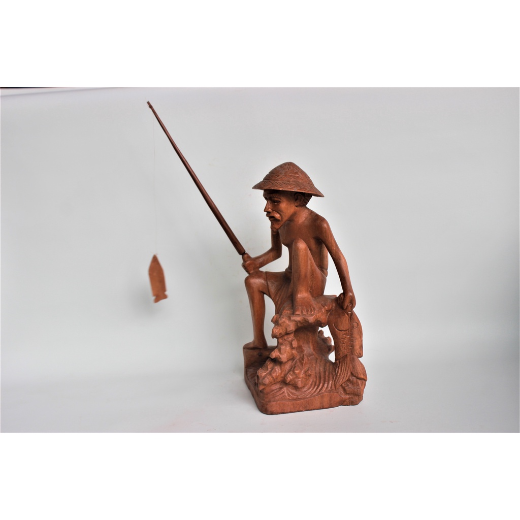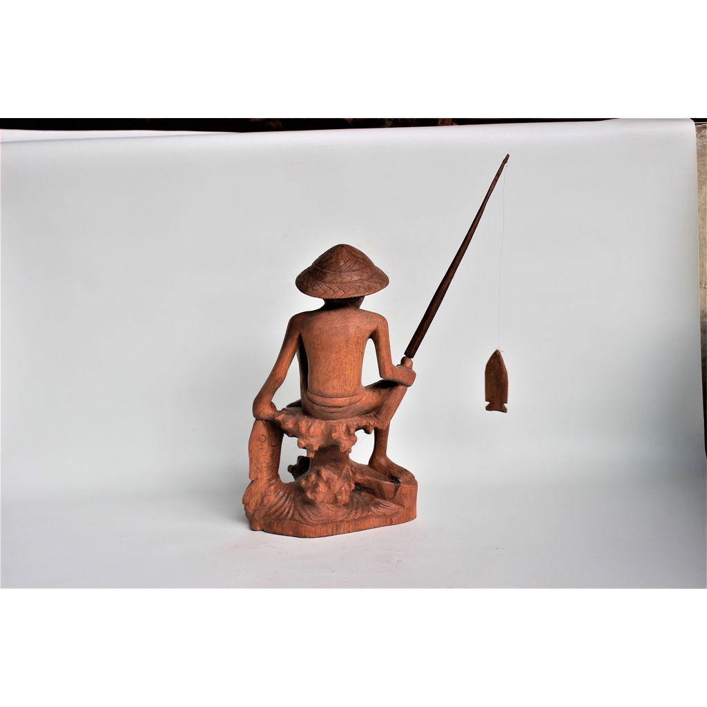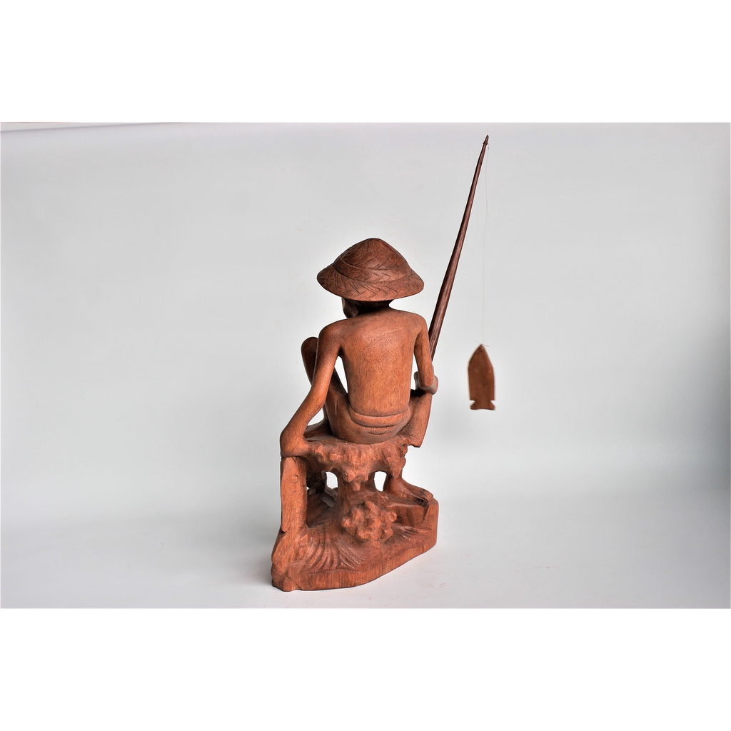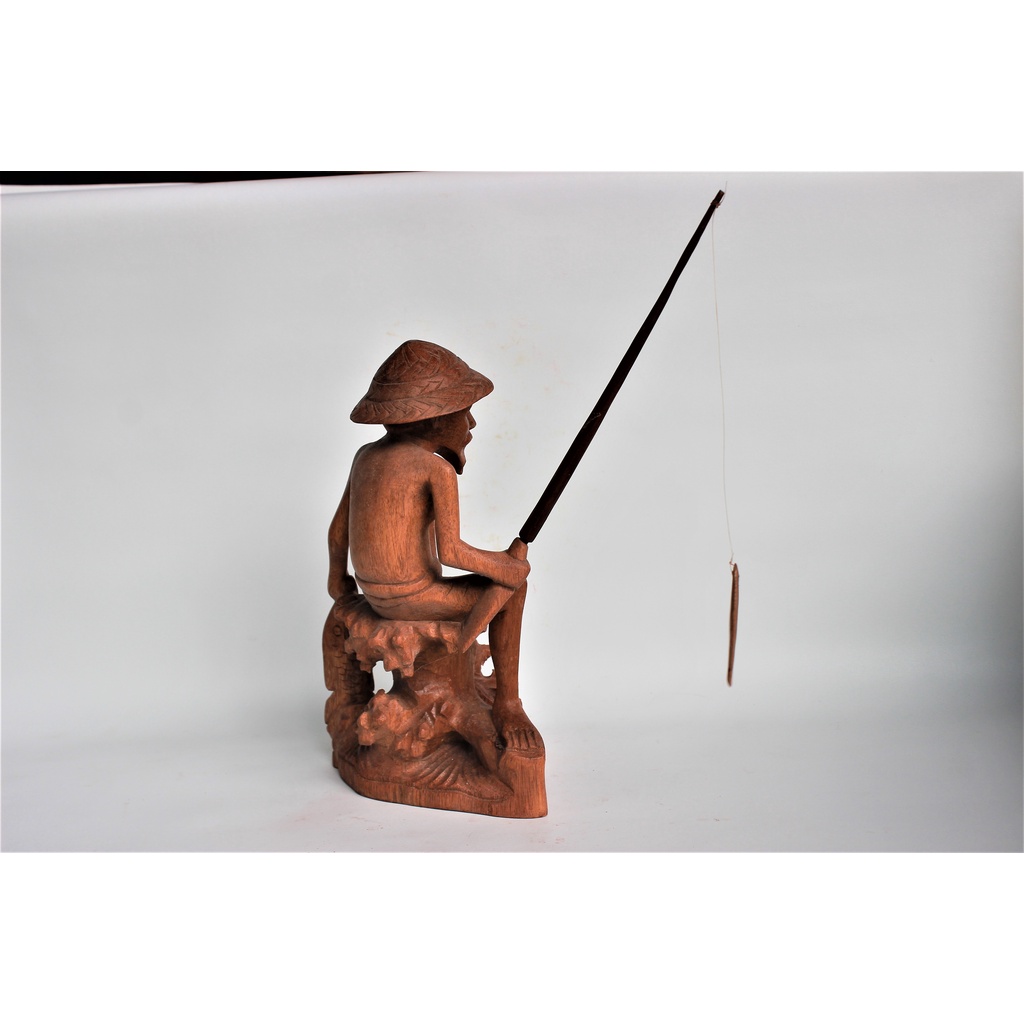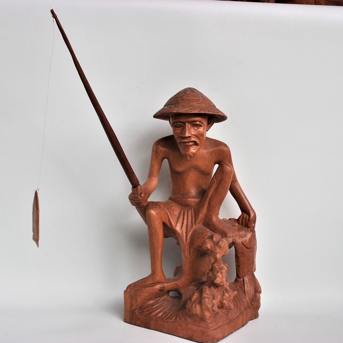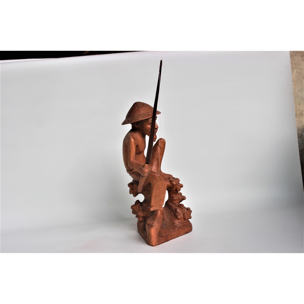 Patung Kakek Mancing Kayu Buatan Tangan Bali 30x17x11 cm