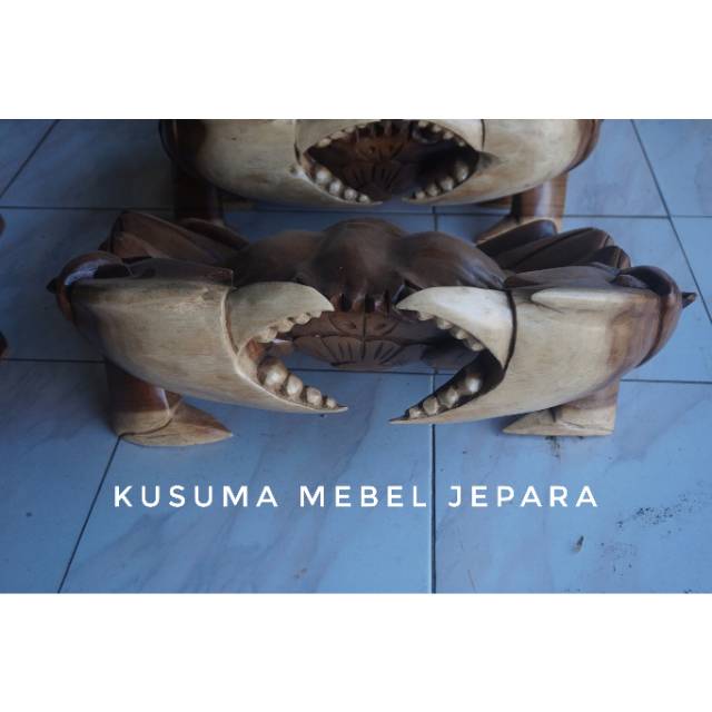 Patung Kepiting Kayu Trembesi Solid (Panjang 50cm)