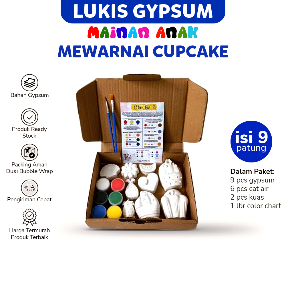 Patung Lukis Gypsum Cupcake / Kue Series DIY Mewarnai Mainan Anak 9 Pcs Patung Gypsum Dengan 6 Pcs Cat Air Dan 2 Pcs Kuas Lukis Seri Lainnya Serangga / Insect Hewan Laut / Sea World Trasportation / Kendaraan