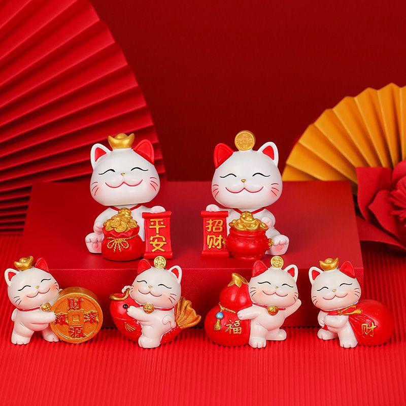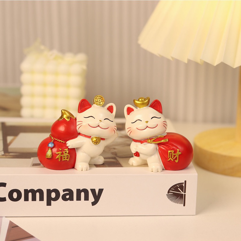 Patung Pajangan Kucing Hoki Lucky Cat 1 Set/Patung Kucing Kekayaan Rezeki Lucky Cat Fortune Cat
