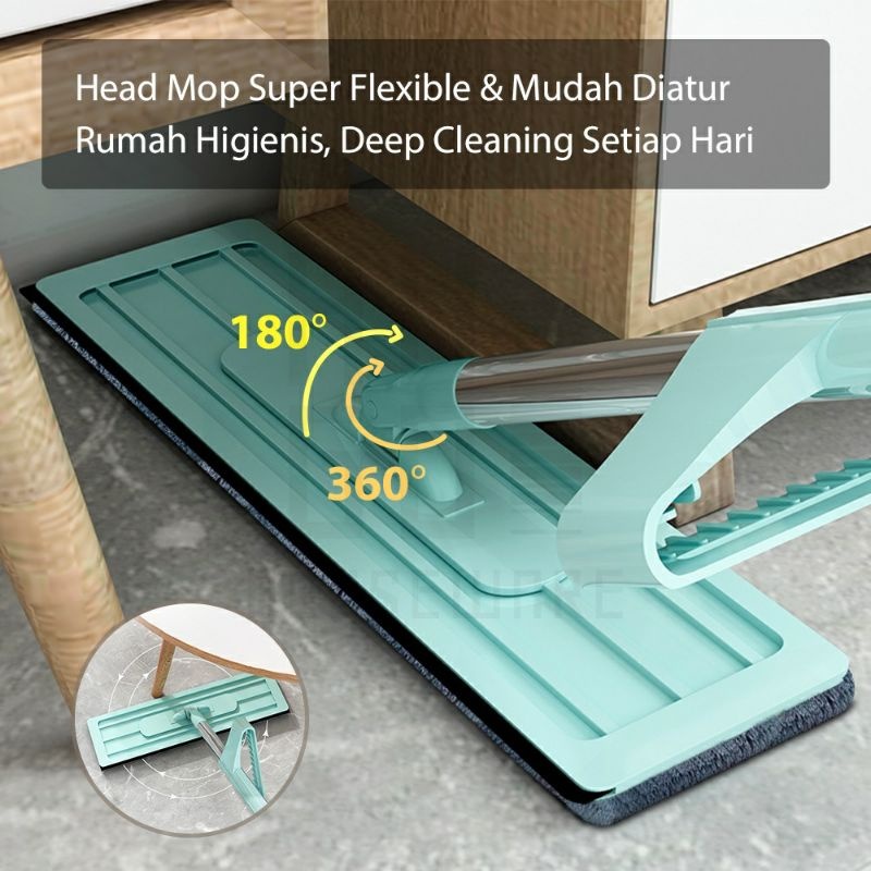 Paus Biru - Alat Pel Lantai Ultra Mop Acline - Pel Lantai Tarik Handle Free - Flat Mop Lantai Microfiber Daya Serap Tinggi