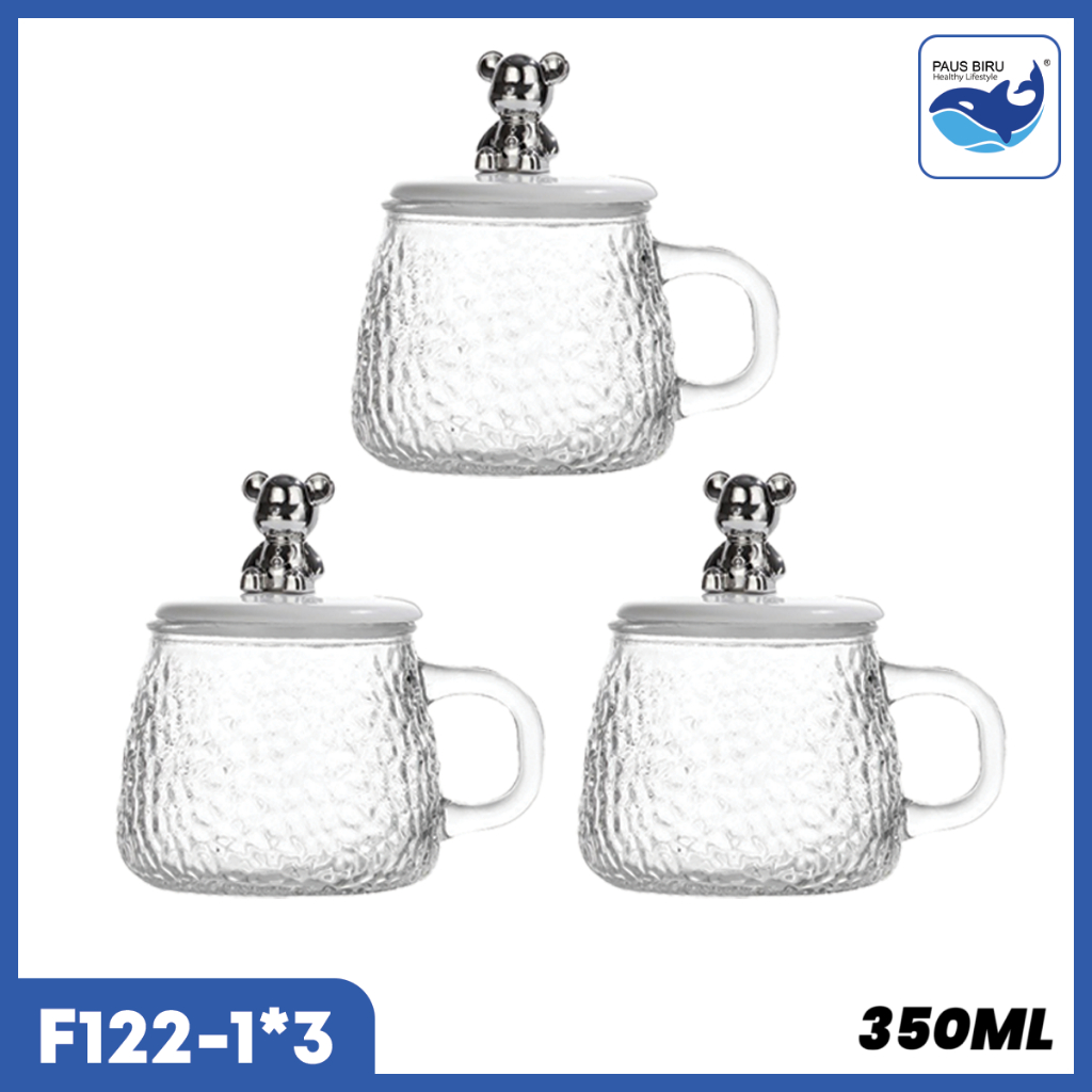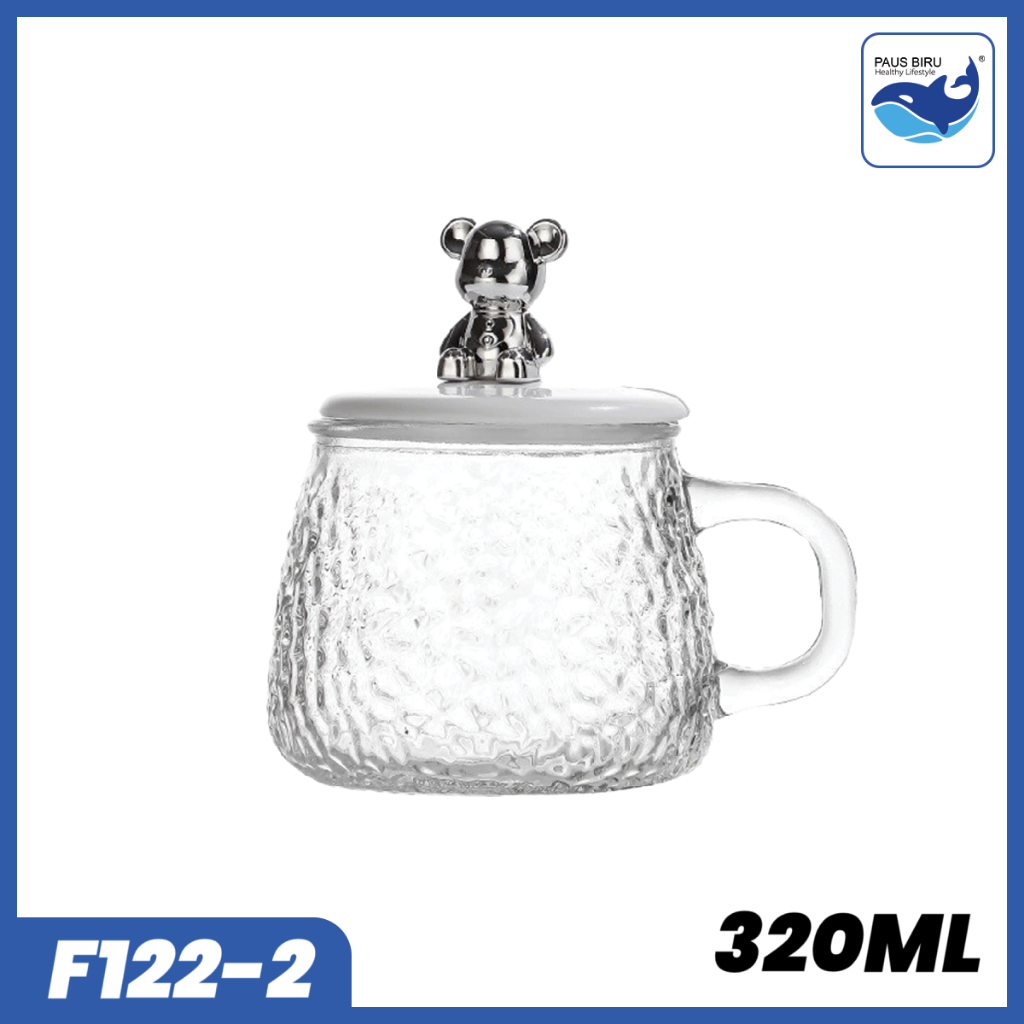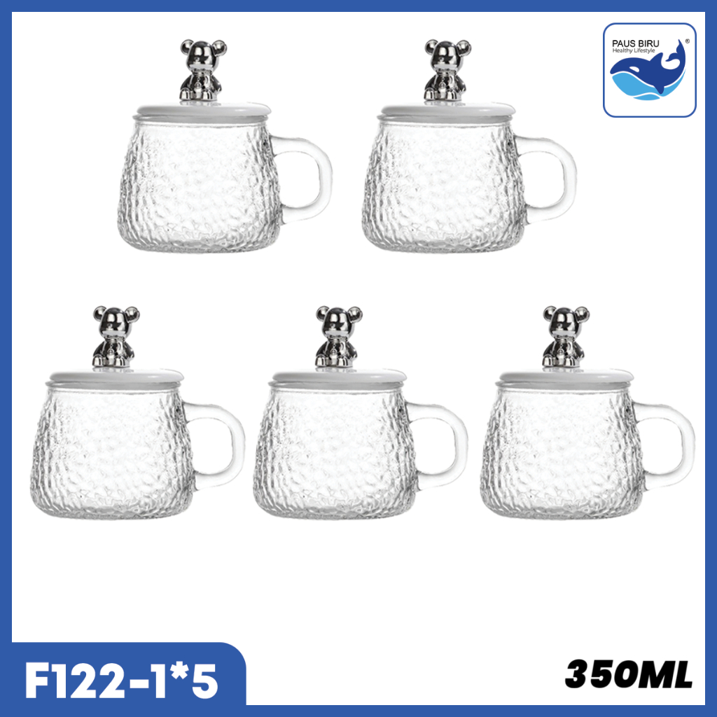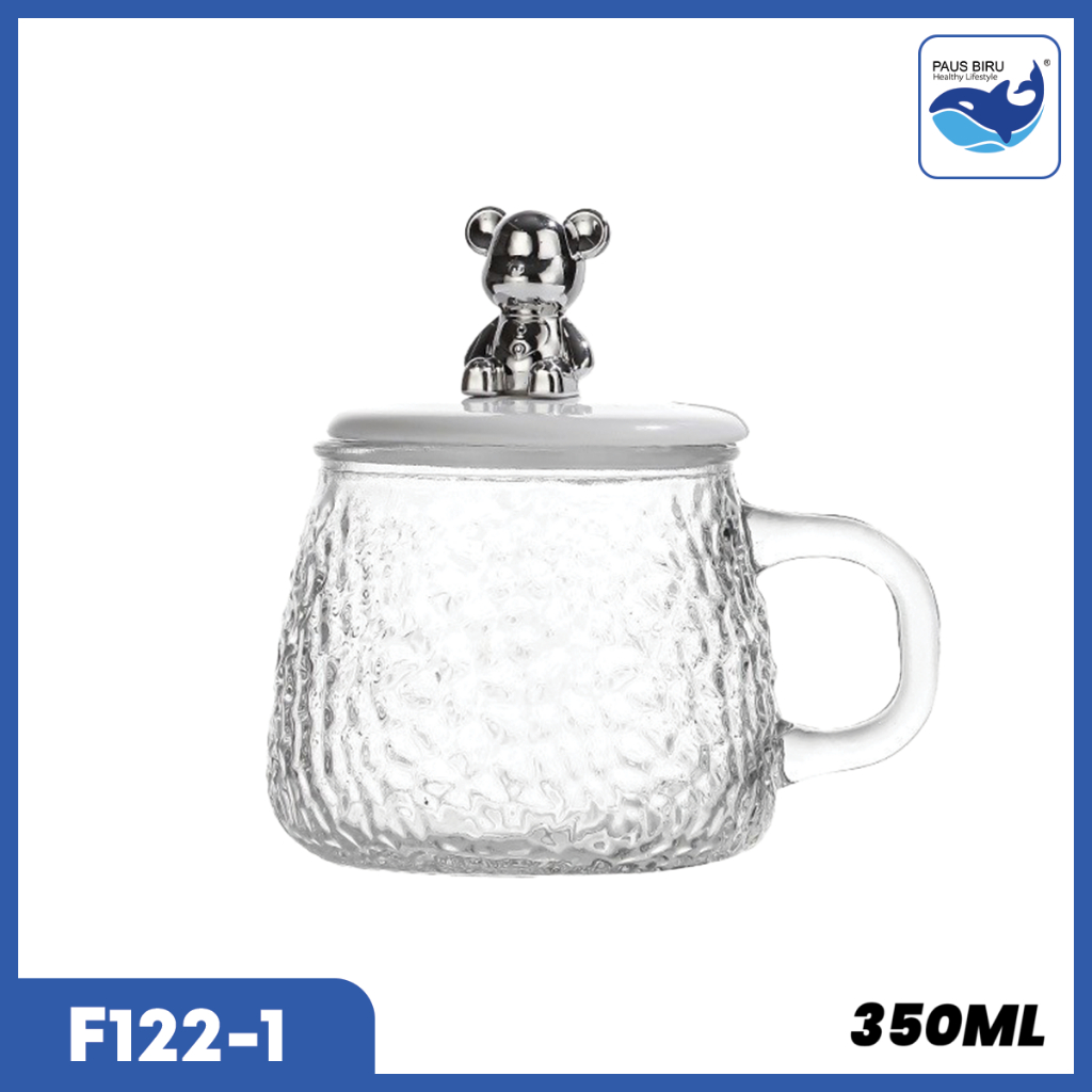 Paus Biru - Gelas Kaca Glass Mug Aesthetic 450ml / Gelas Minum Kaca Simple Elegan Water Bottle Cup for Coffee and Tea / Gelas Kaca Dengan Anak + Sedotan Motif Animal 350ml Gelas Lucu Cangkir Mug Gelas Susu