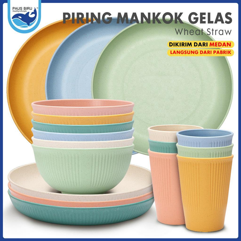 Paus Biru - Piring Makan | Mangkok Makan | Gelas | Cangkir Wheat Straw | All in One Peralatan Makan