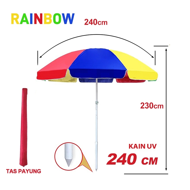 Payung Pelangi 240cm Payung Pantai Payung Cafe Payung Tenda 220cm Payung Tenda 180cm Payung Jualan Jualan Taman Pantai Cafe Bazar Lapak