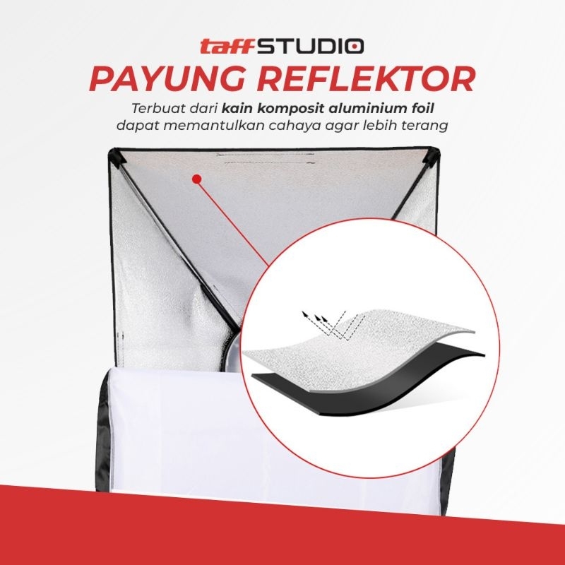 Payung studio foto Softbox Reflektor Fotografi + Bohlam + stand holder briket tripod, flash diffuser studio fotografi, payung replektor studio foto Fiber Karbon - pengganti halo ring light LED studio foto