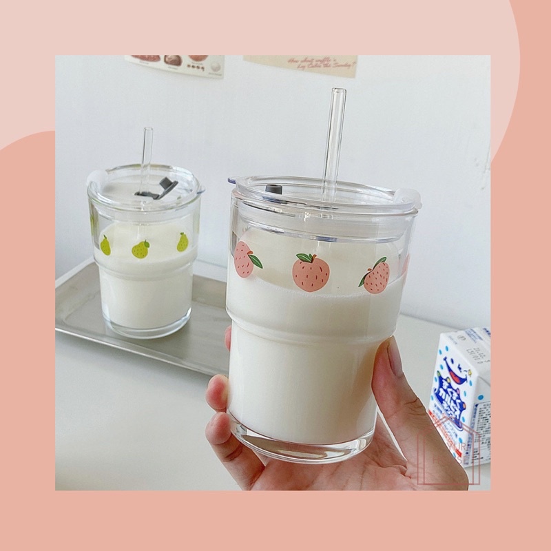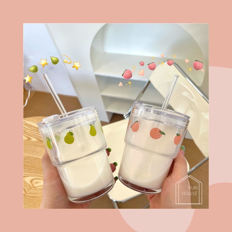 Peach tumbler/ tumbler kaca korea/ gelas kaca aesthetic/ tumbler + sedotan