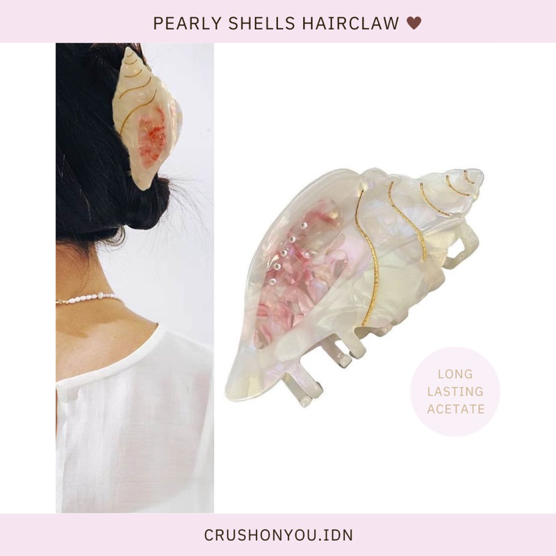 Pearly Shell HairClaw Premium Jepit Rambut | CRUSHONYOU | Hair Clip Jedai Kerang Sea Pearl Mutiara Rambut Hair Claw Aesthetic Gift Kado