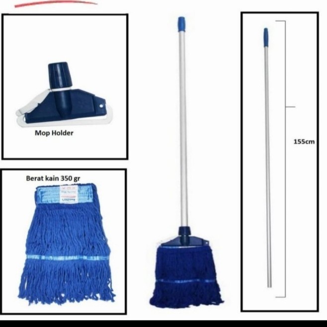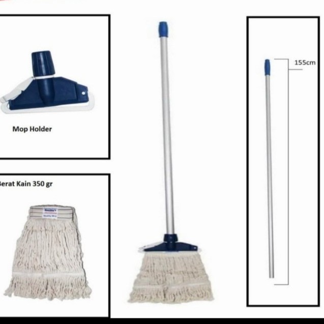 Pel Jepit Gagang Stainless Komplit | Kain Pel Lantai Gagang Panjang Pel Mall Hotel Restoran Dapur Pabrik Industri Mop Floor Pel Sumbu Kotak Aluminium