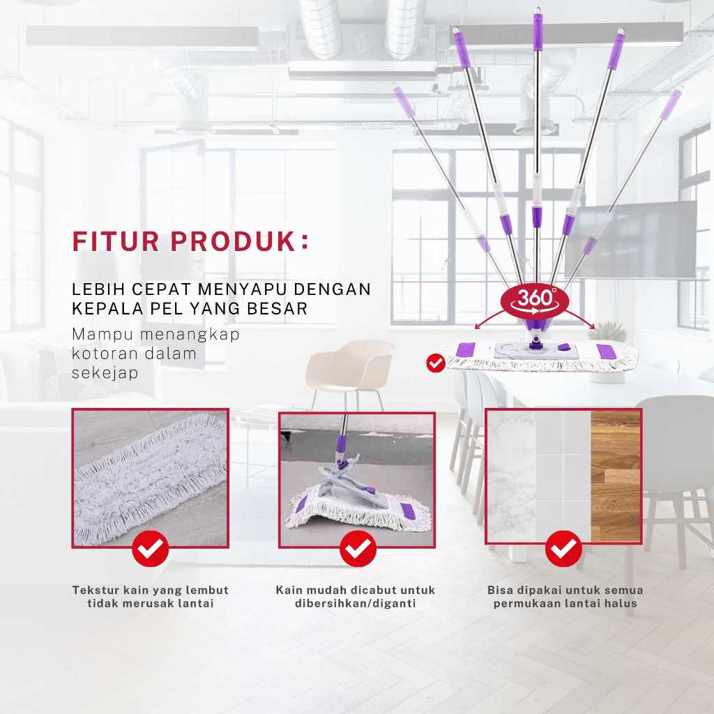 Pel Lantai Datar Pusat Perbelanjaan Lobby Hotel Rumah - Bisa Basah Dan Kering - Kain Pel Bisa Reffil