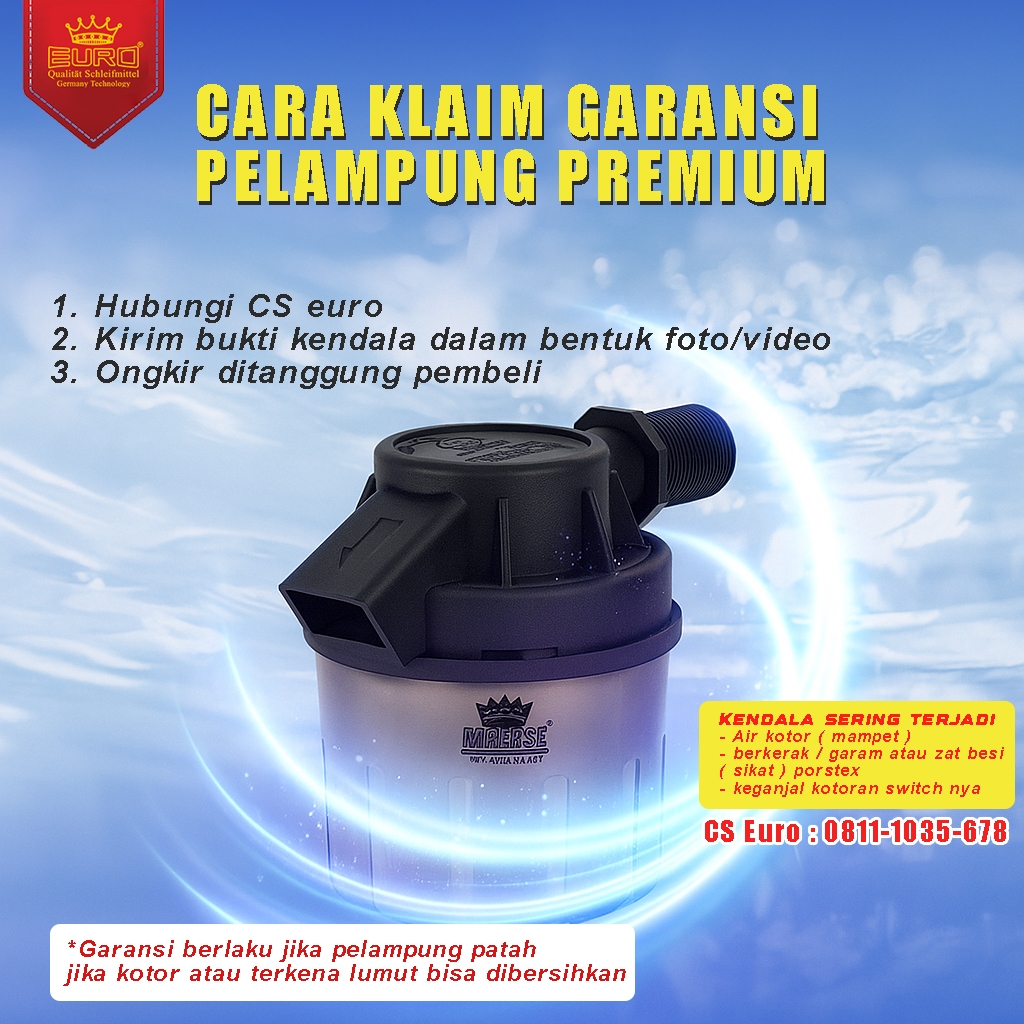 Pelampung Air Otomatis Toren Premium Kran Air Otomatis Tandon Bak Air Toren Tanpa Listrik EURO 1/2 inch