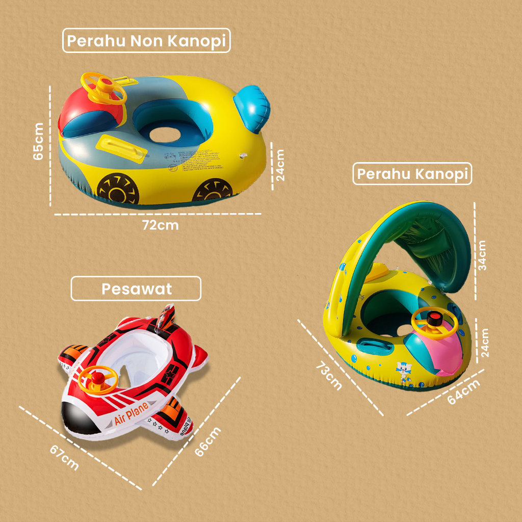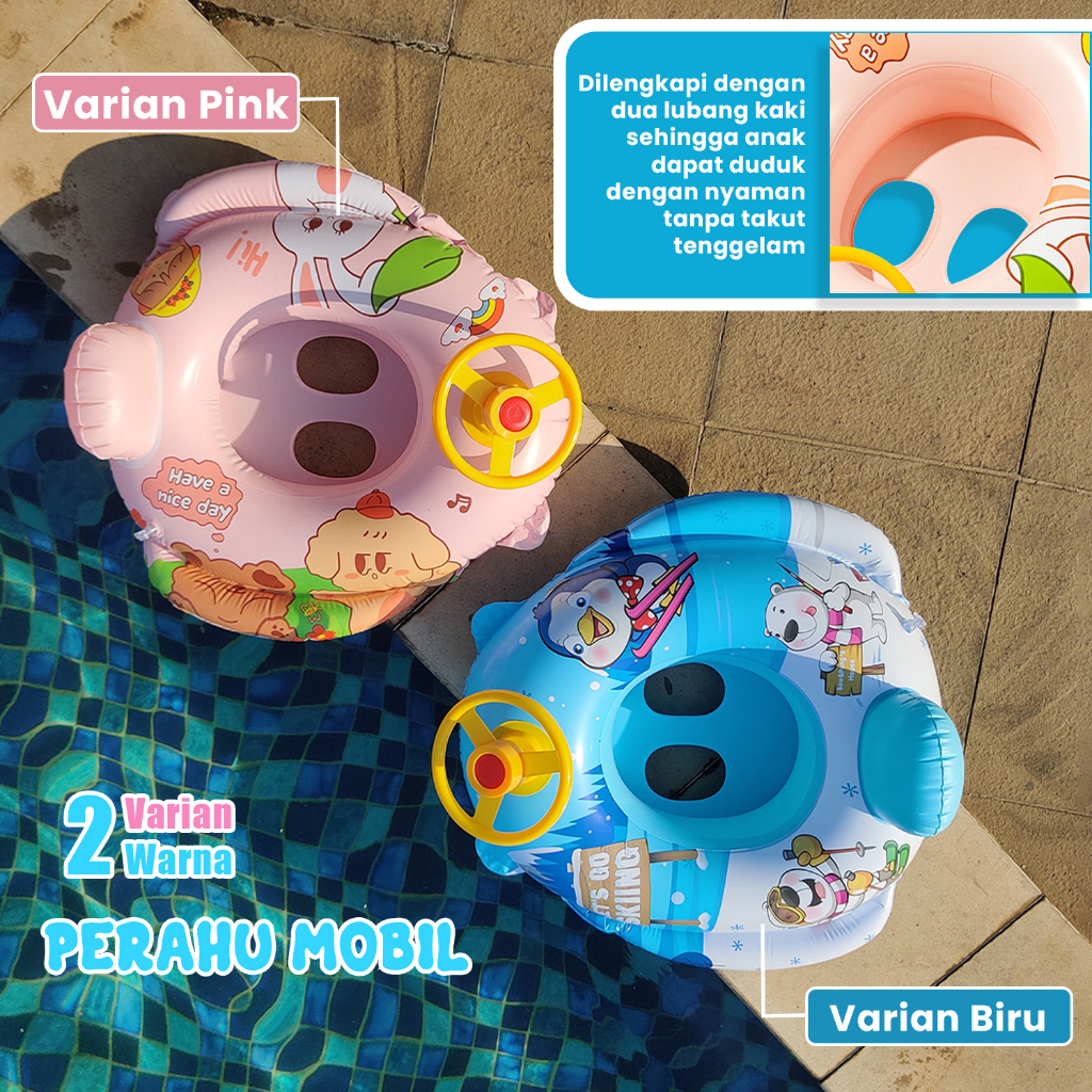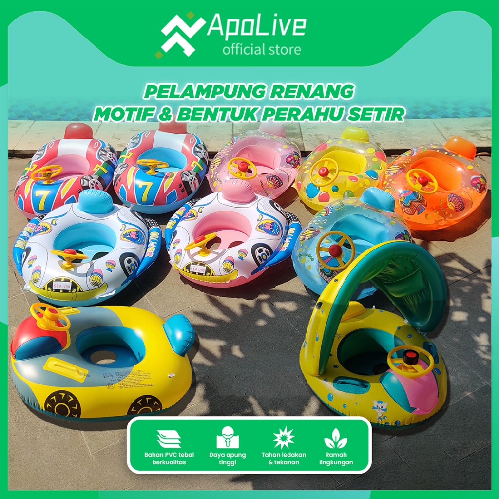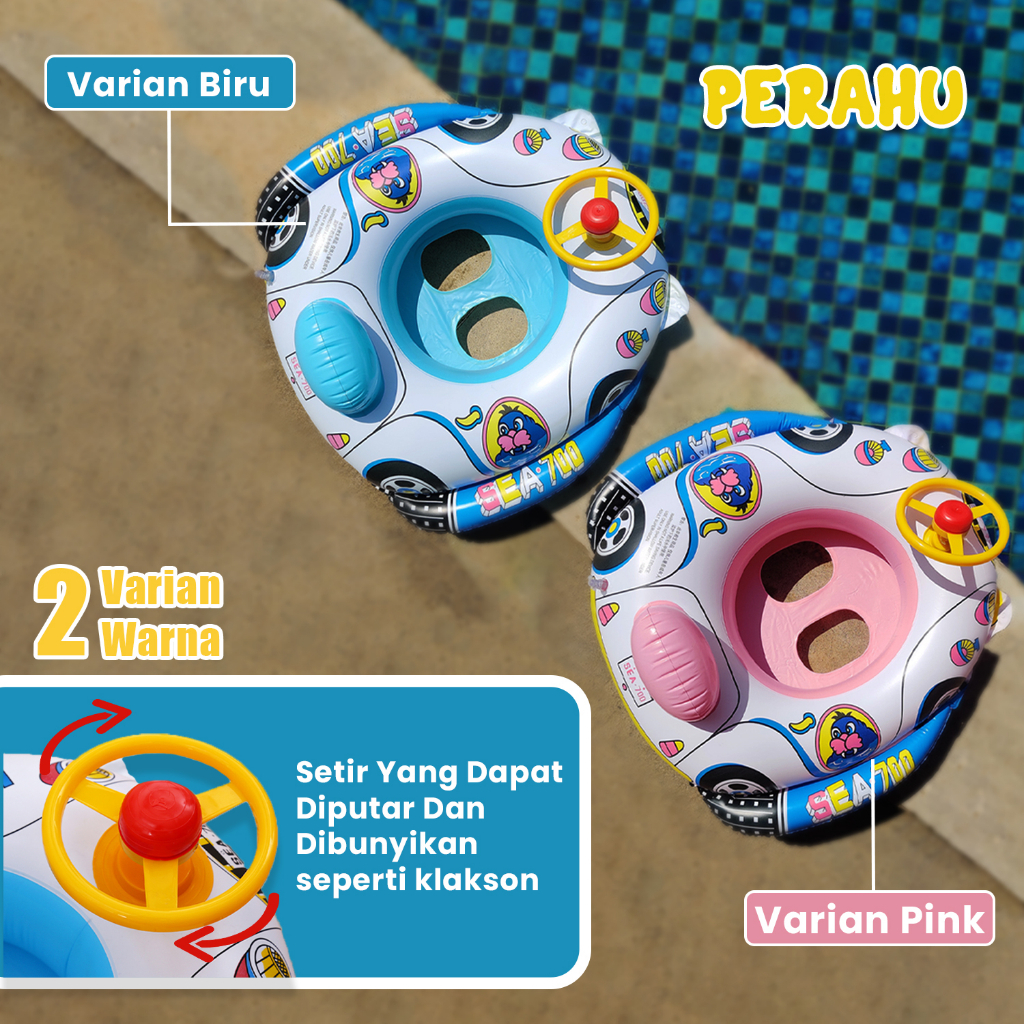 Apolive - Pelampung Renang Duduk Bayi Karakter Perahu Setir Baby Swim Trainer Safety Boat