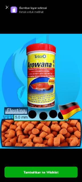 Pelet ikan arwana/Tetra arwana/340 gr.