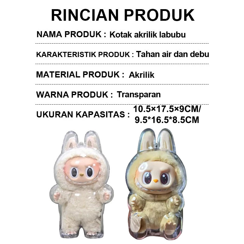 Pelindung Boneka Labubu/Acrylic Casing Labubu V1 V2/Transparent Acrylic Box/Popmart Display Box/Transparent Storage Display Box
