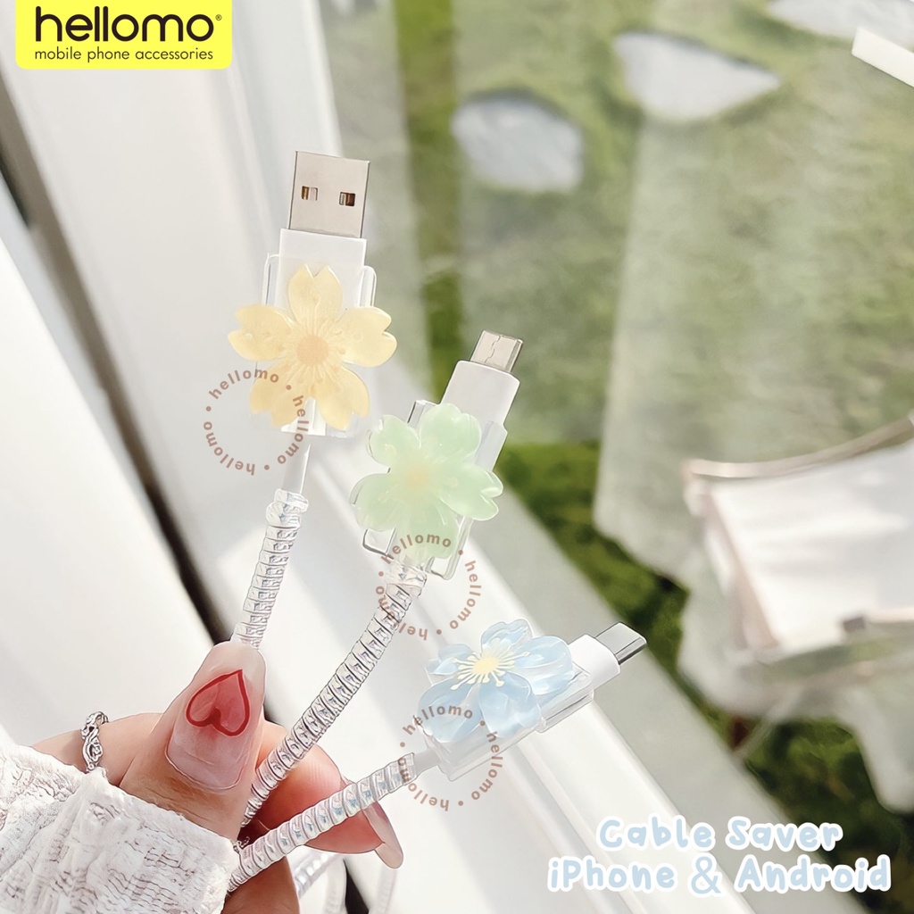 Pelindung Kabel Data Charger Handphone Case Pelindung Cable Universal Transparan Motif Bunga USB Tipe C Android iPhone Cable Protector