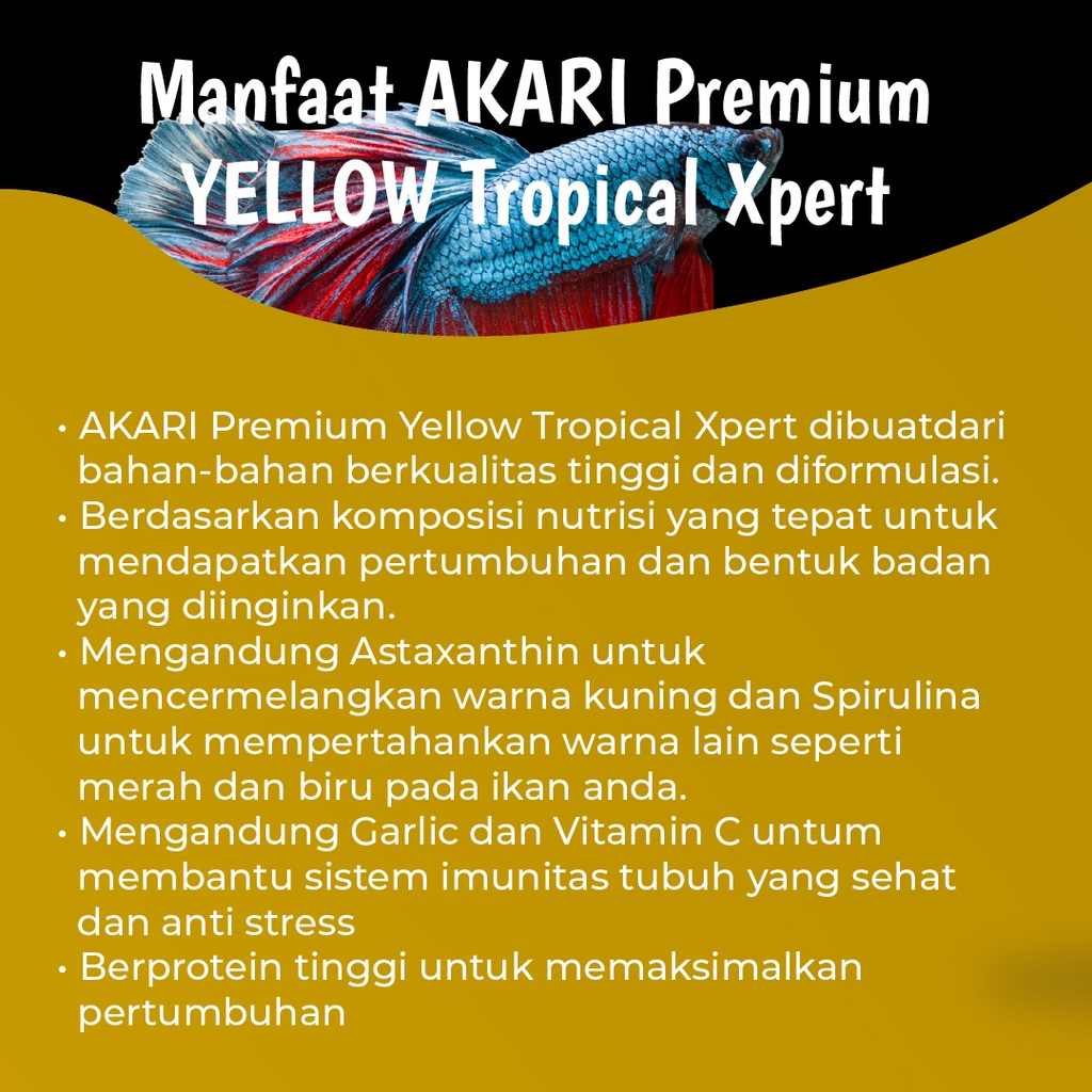 Pellet AKARI Premium YELLOW Tropical Xpert Pakan Ikan Cupang Guppy Molly Pelet Makanan Ikan TERBAIK